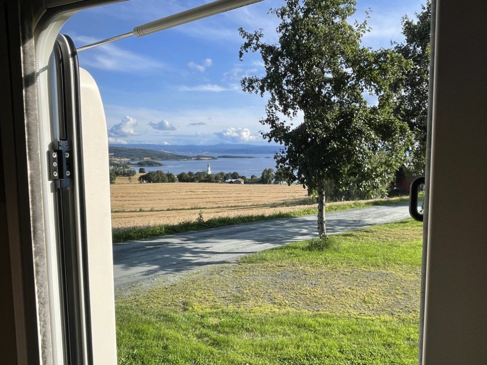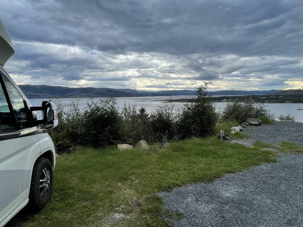 Wir stehen erhöht über dem Trondheimsfjorden mit herrlicher Aussicht. Zwar verschwindet die Sonne hinter uns recht früh bereits kurz nach 18 Uhr, aber das ist egal. Hauptsache uns gefällt es hier.