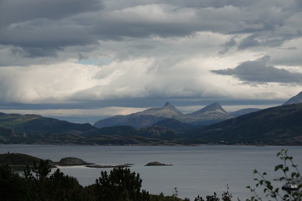 Zurück auf unserem Panoramaplatz geniessen wir die Ausblicke, die wechselnden Wolken- und Sonnenstimmungen und schauen dem Hurtigrutenschiff zu wie es majästästisch unter uns vorbeischippert.