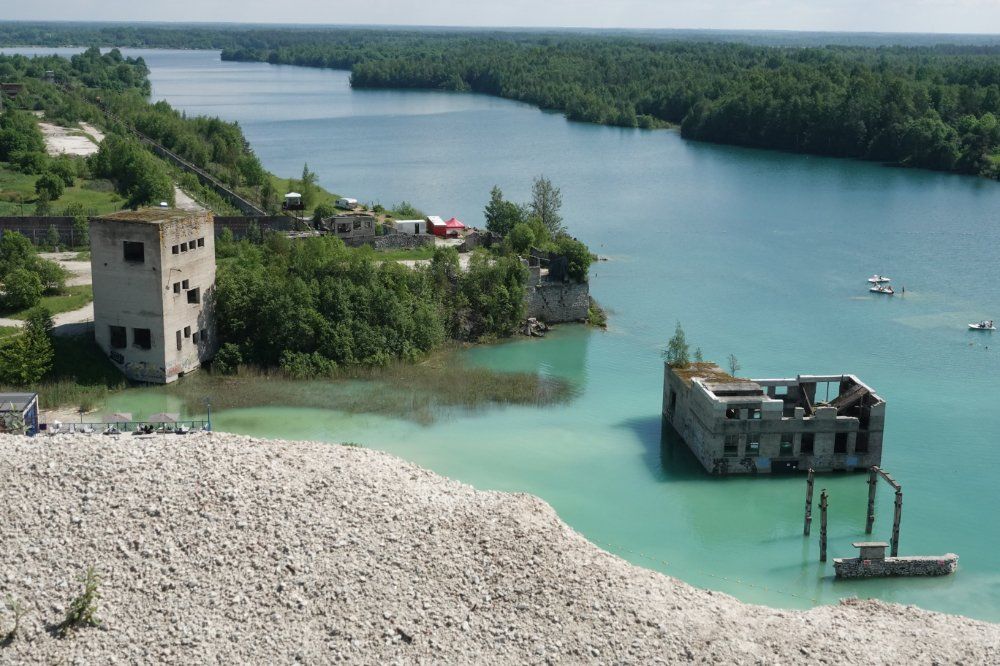 Our first destination today: the Rummu open-cast mine. You can also visit the former Murru prison in Rummu, which was built by the Soviets in the 1940s. But we are more interested in the limestone quarry around the corner. Here the inmates were forced to do forced labor. What is special about Rummu is that it is a good half under water. The quarry was kept dry with pumps. When the area was abandoned in the early 1990s, the pumps went with it - and the water came. Today the area around the Rummu prison is a remarkable seaside resort. A special atmosphere and we also climb up the limestone hills to enjoy the view from above.