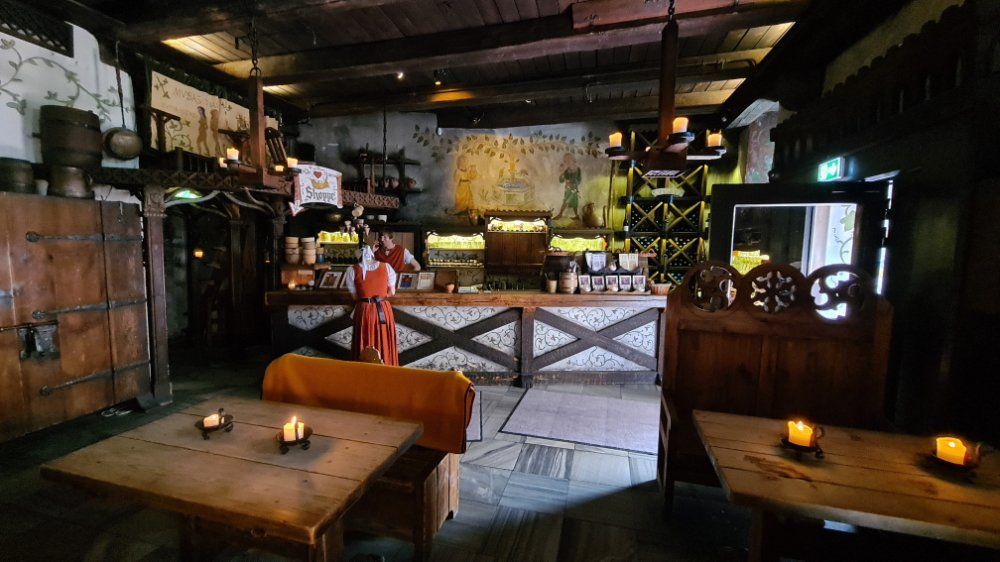 We really like the city and of course we treat ourselves to lunch here. The Olde Hansa restaurant is decorated in the style of a rich merchant in the Middle Ages. Even the toilet!