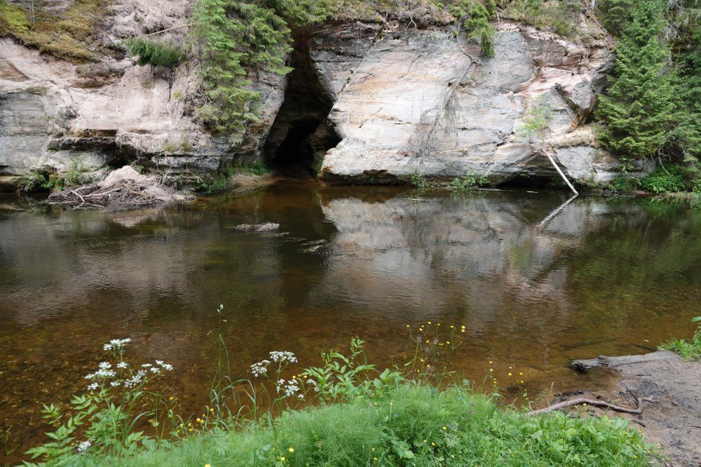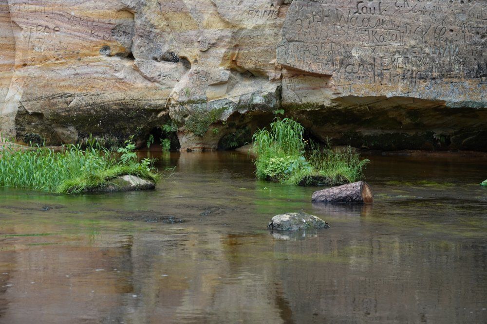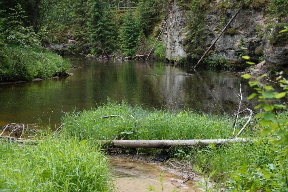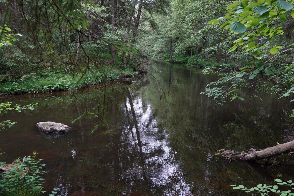 Today we want to do a circular hike in the Ahja Valley. The best impression of the river and the rocks would of course be from the water. You could also rent canoes at our campsite, but firstly the weather is changeable and cold and secondly we have never been out canoeing before and don't want to try it today.