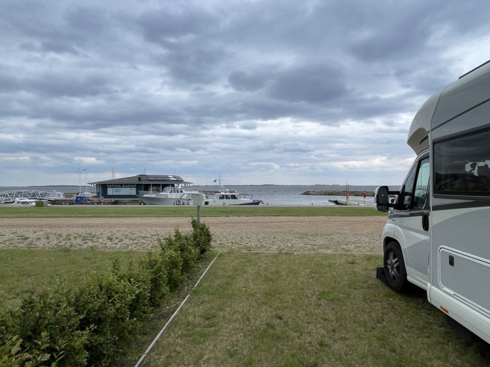 We decide to spend the night at Lake Peipus again today and drive to Räpina Marina. We generally prefer to leave the free parking spaces on Sundays to the day trippers and the parking space here is very nicely located.