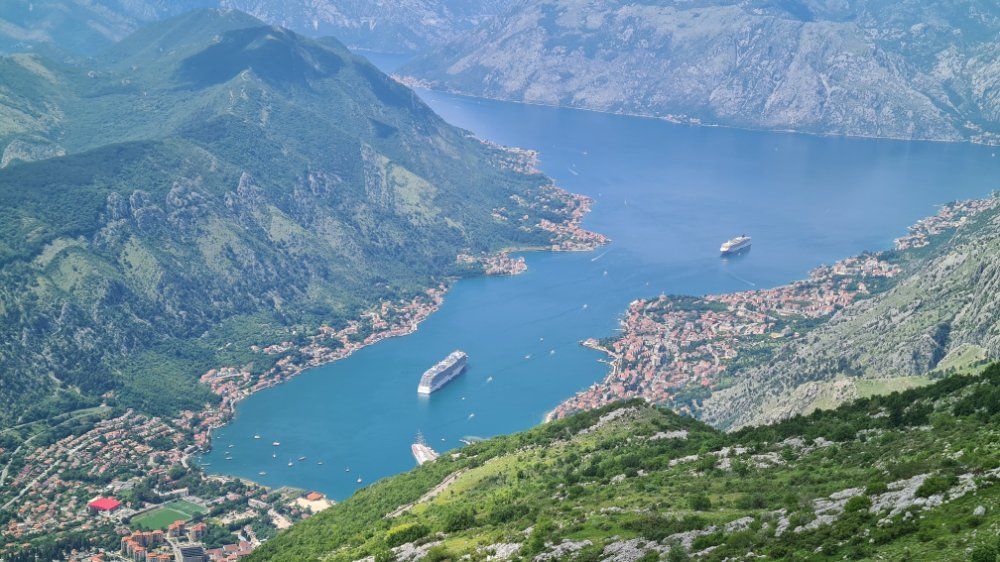 Bereits um kurz nach 5 Uhr klingelt bei uns der Wecker. Noch vor dem Frühstück fahren wir los. Die Bucht von Kotor ist zwar schön aber bei viel Verkehr auch anstrengend zu fahren. So früh am Morgen sind doch noch nicht so viele unterwegs. Da biegt doch gleich ein Kreuzfahrtschiff um die Ecke! Ein grosser Parkplatz und schwupps halten wir an, frühstücken und beobachten das Schiff, bis es aus unserem Blickfeld verschwindet.
