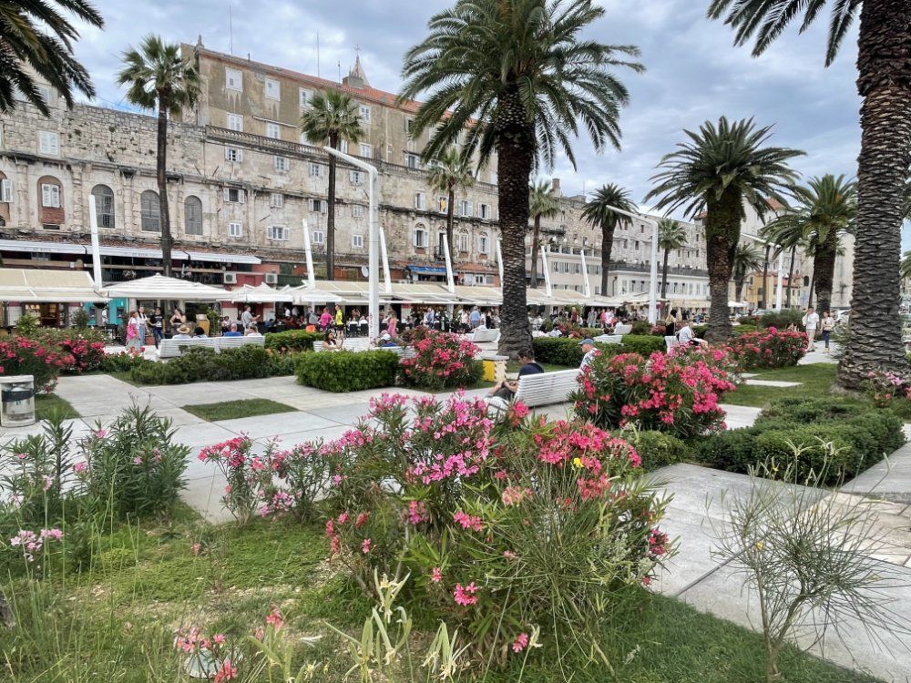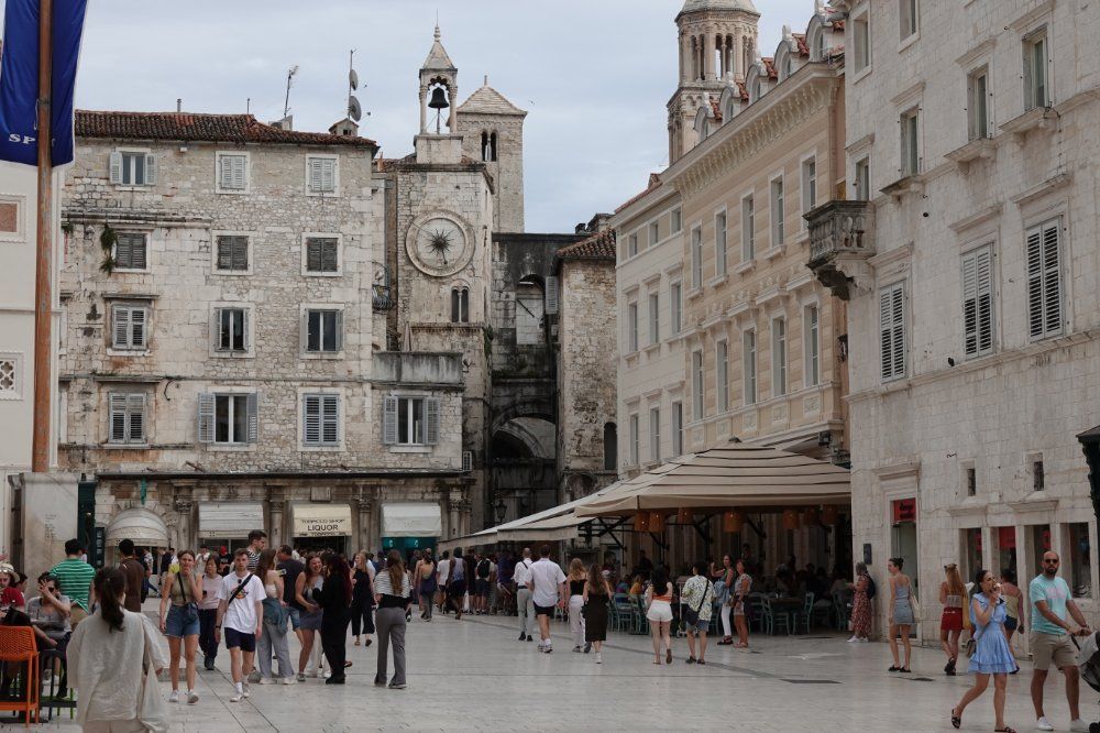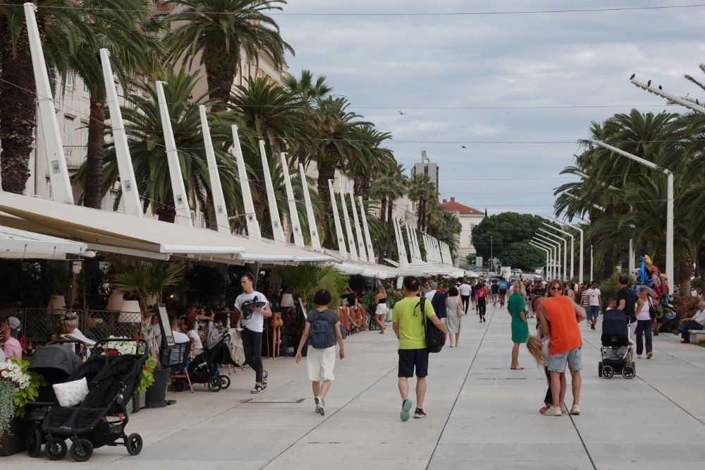 Es ist noch nicht mal 10 Uhr und uns kommen schon fast Massen von Womos entgegen. Oh je, das kann ja heiter werden. Wir fahren bis Split und da wir früh dran sind hat es noch ein paar freie Plätze. Bis zum Abend sind auch die Notplätze belegt! Um 13.30 Uhr gönnen wir uns im Campingrestaurant ein spätes Mittagessen und mit dem 16.30 Uhr-Bus fahren wir dann doch noch in die Stadt und flanieren zusammen mit gaaaaanz vielen Touristen durch die Gassen. Noch ein Apero und dann gehts zurück. Arbeit wartet noch auf uns, die Homepage der letzten drei Tage muss nachgeholt werden.