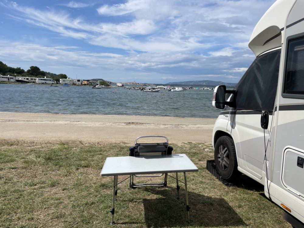 Kurz nach Primosten schauen wir uns den Camping Adriatic an. Auf jeder Reise nach Kroatien und auch nach Griechenland sind wir daran vorbeigefahren. Tja, es hat sogar einige freie Ecken aber genau können wir es nicht erklären, wir können uns mit dem Platz nicht erwärmen und fahren weiter.