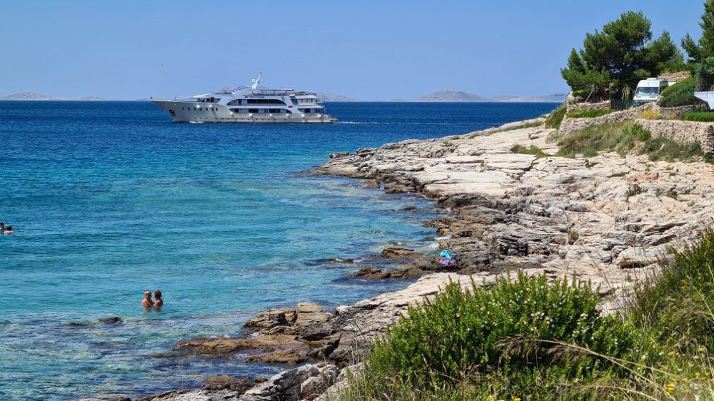 Wir verbringen 3 herrliche Tage auf der Insel Murter. Die Sonne strahlt von frühmorgens bis spätabends vom Himmel. Zum Teil ist der Wind etwas heftig, dafür schwitzen wir aber auch nicht.