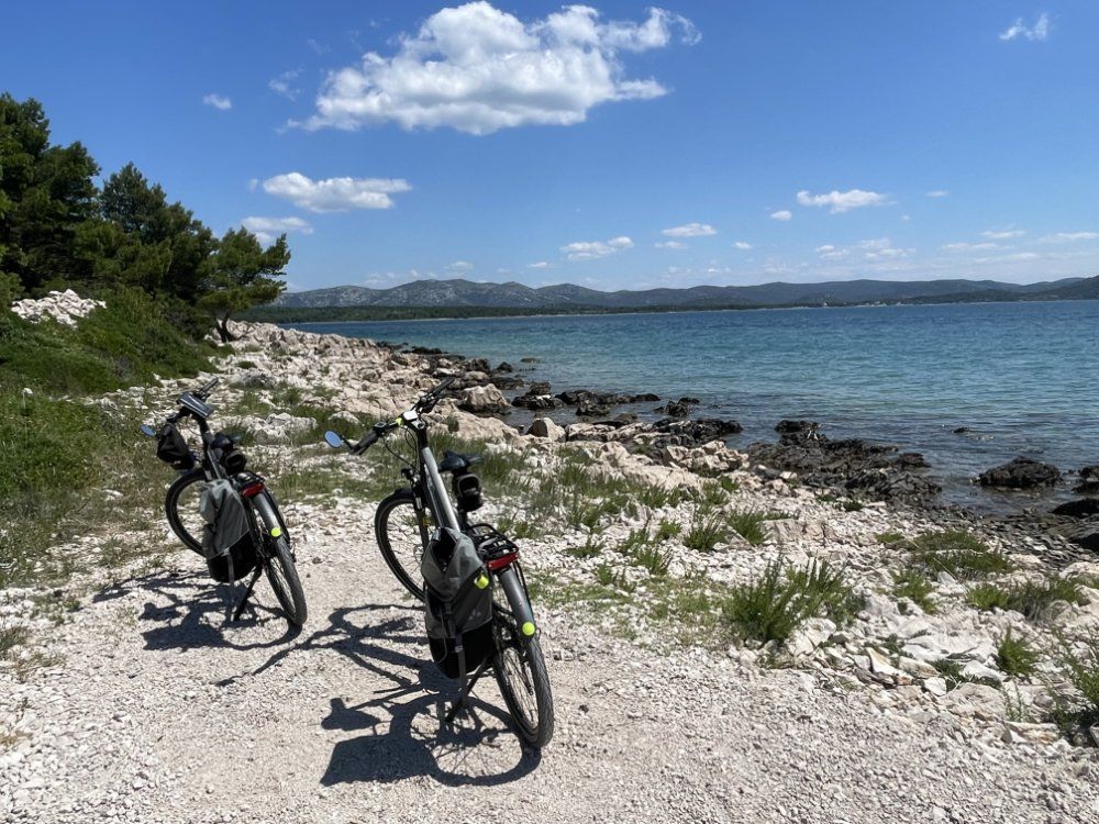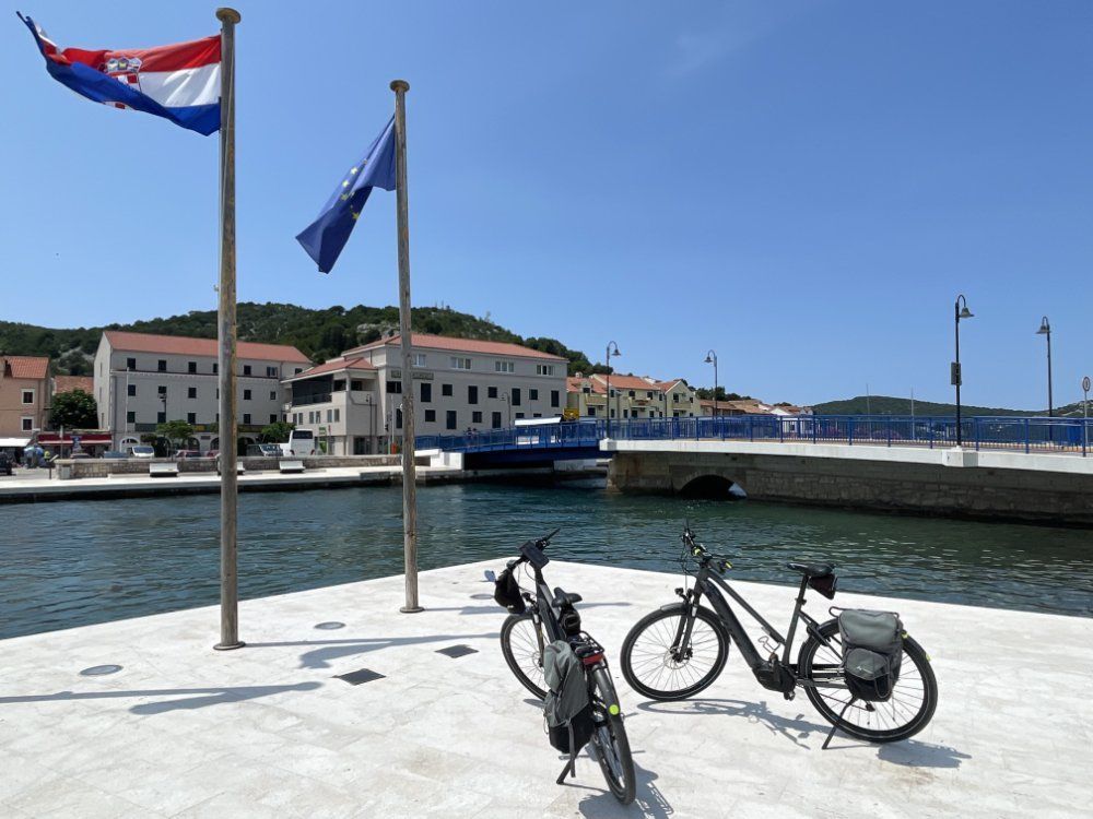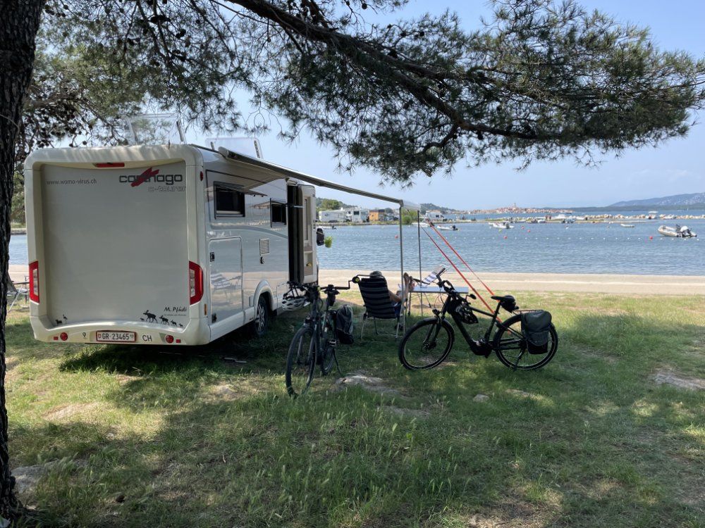 Nach unserem Salatbouget und etwas Siesta laden wir unsere E-Bikes aus und bummeln noch nach Bettina. Einfach mal schauen was es alles Neues gibt. In die andere Richtung gehts zum Camping Jezera und auch da müssen unsere Wundernasen noch hin.