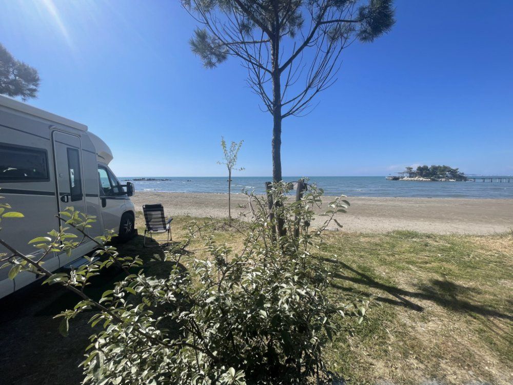 Die Meinungen zu diesem Platz sind sehr geteilt. Wahrscheinlich kommt es auch darauf an ob man in der Neben- oder Hauptsaison hier ist. Es sind noch nicht alle Stellplätze anfahrbar, aber vorne am Meer wartet ein schönes Plätzchen auf uns und es ist aufgeräumter als vor 4 Jahren.