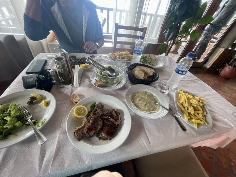 Auf der Passhöhe finden auch wir ein Restaurant mit grossem Parkplatz und wir gönnen uns ein richtiges Gelage!