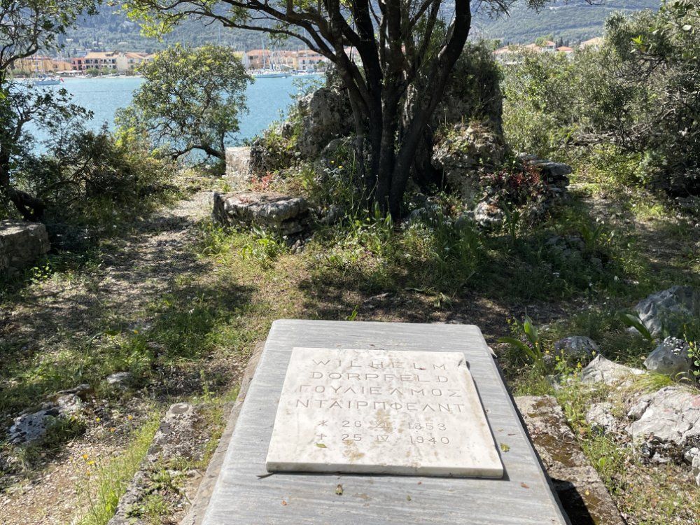 Ganz vorne an der Spitze gibts dann auch noch Kultur. Nach einer kleinen Velowanderung stehen wir bei der Grabstätte von Wilhem Dörpfeld, deutscher Architekt und Archäologe.