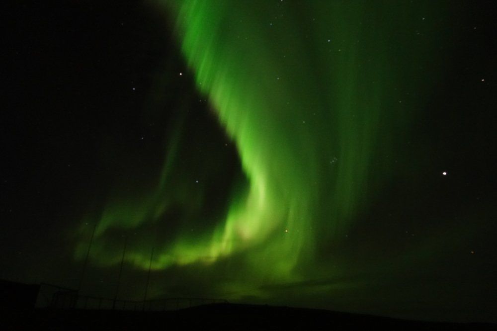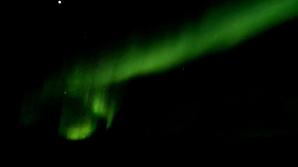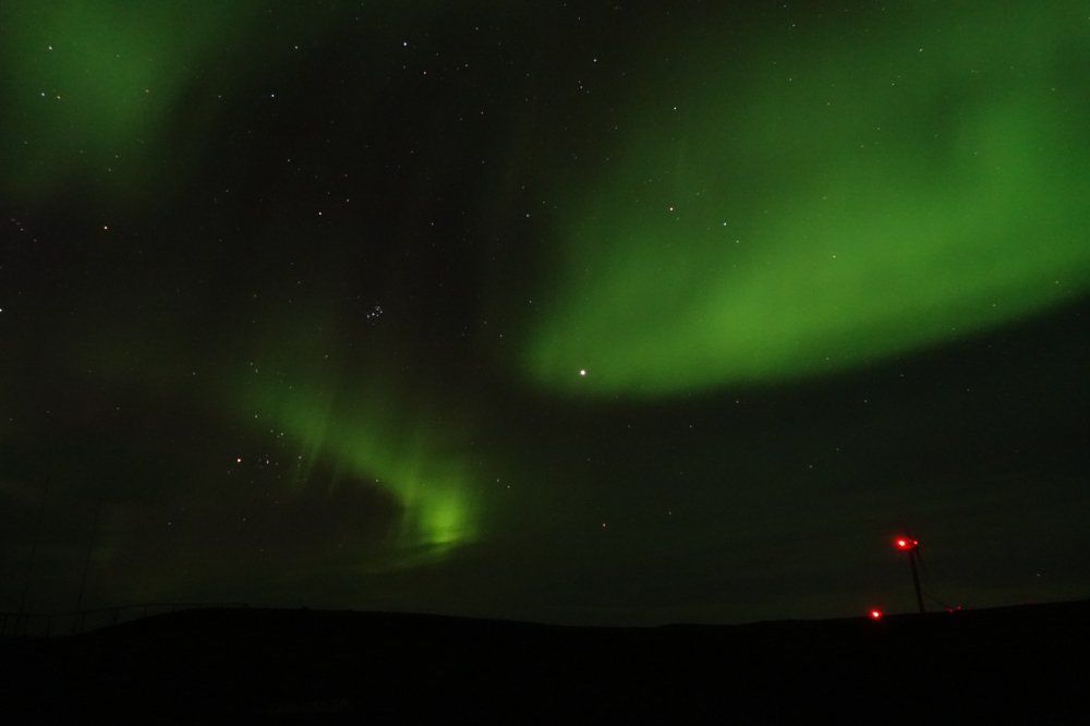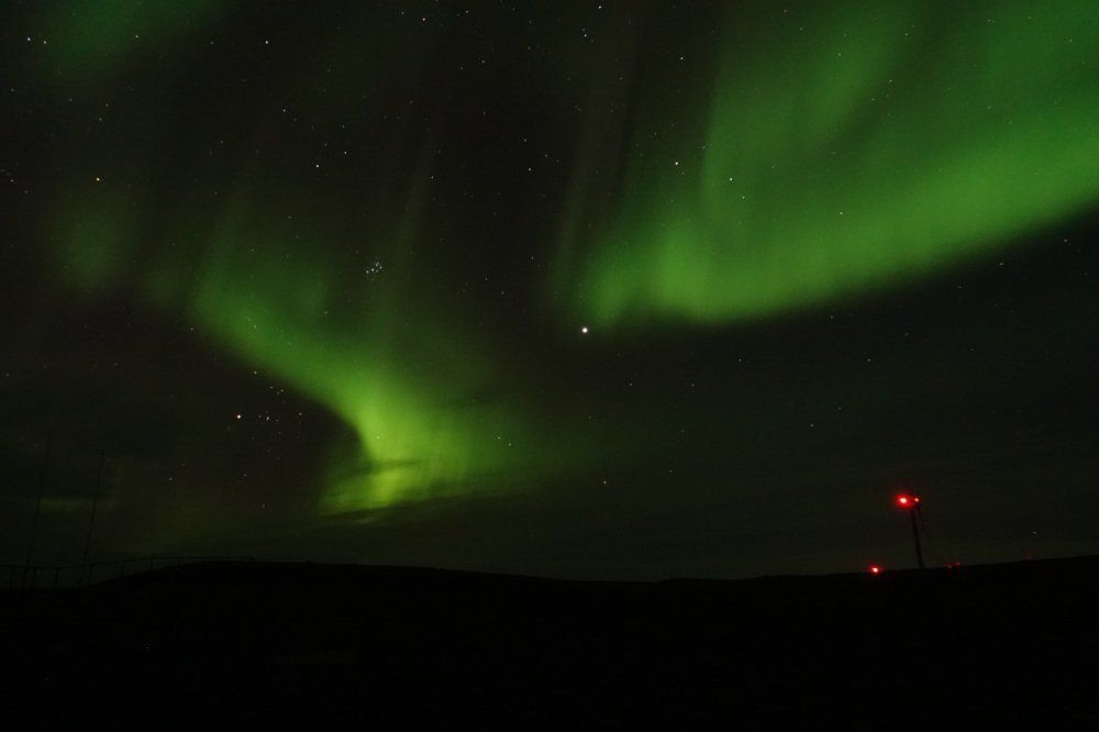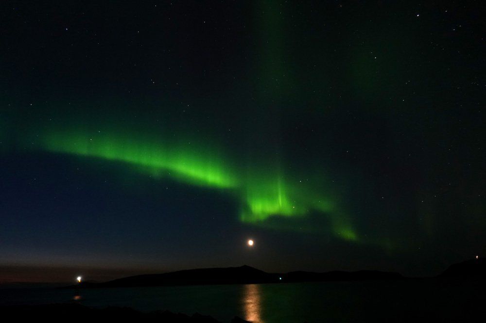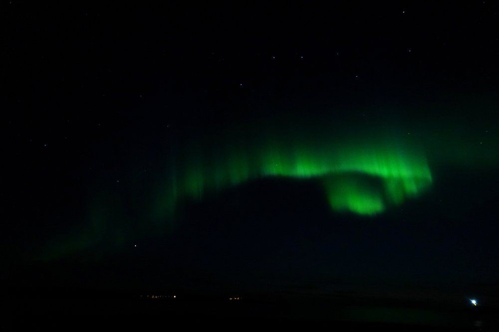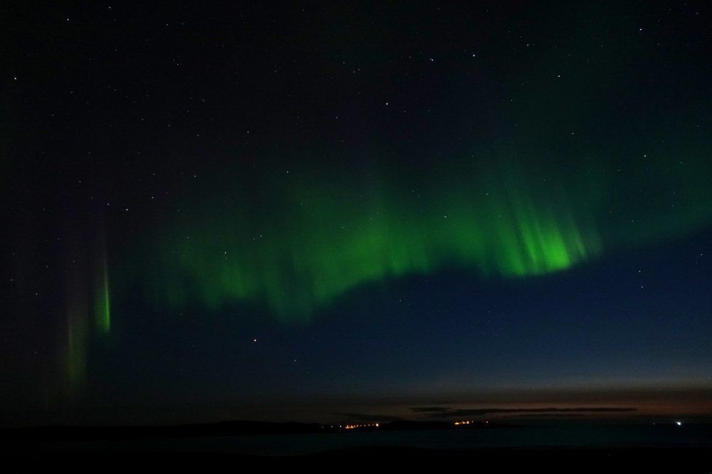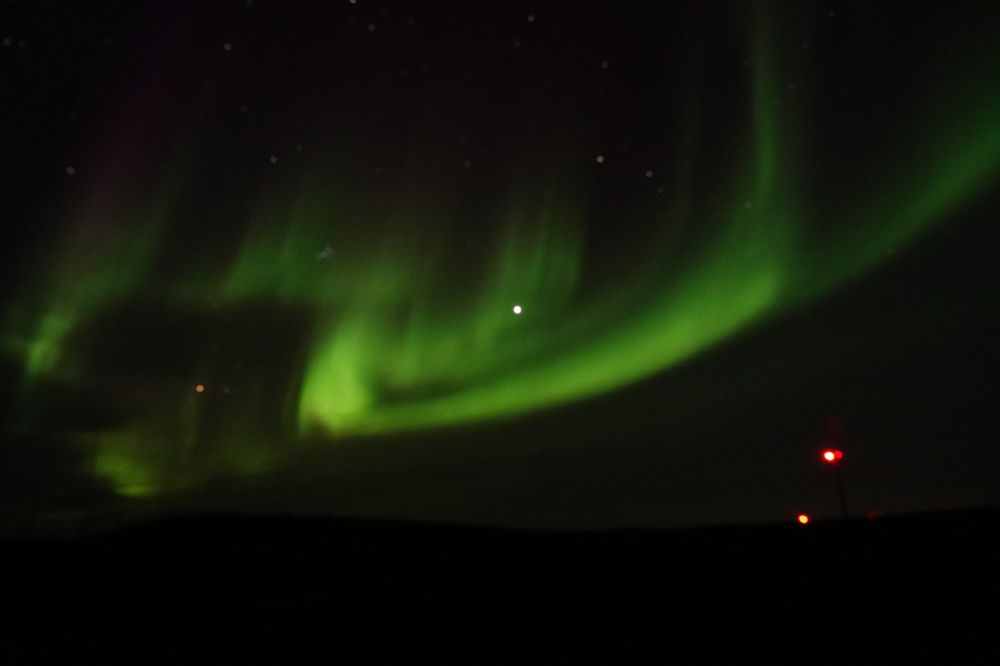Nordlicht? Ja, auch das kommt so gegen 22.30 Uhr. Aber die heftigen Windböen lassen ein Aufstellen eines Fotostativs gar nicht zu.