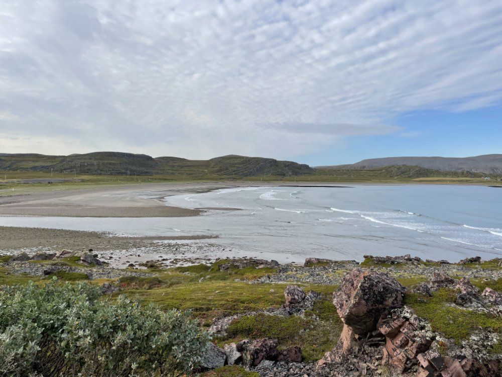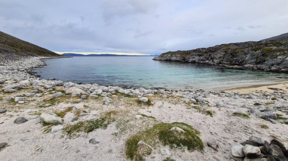 44 herrliche Kilometer später schwenken wir auf die Wiese in der Bucht bei Hamningberg. Zeit für unser Mittagessen und anschliessend eine Wanderung durch diese einmalige Landschaft.