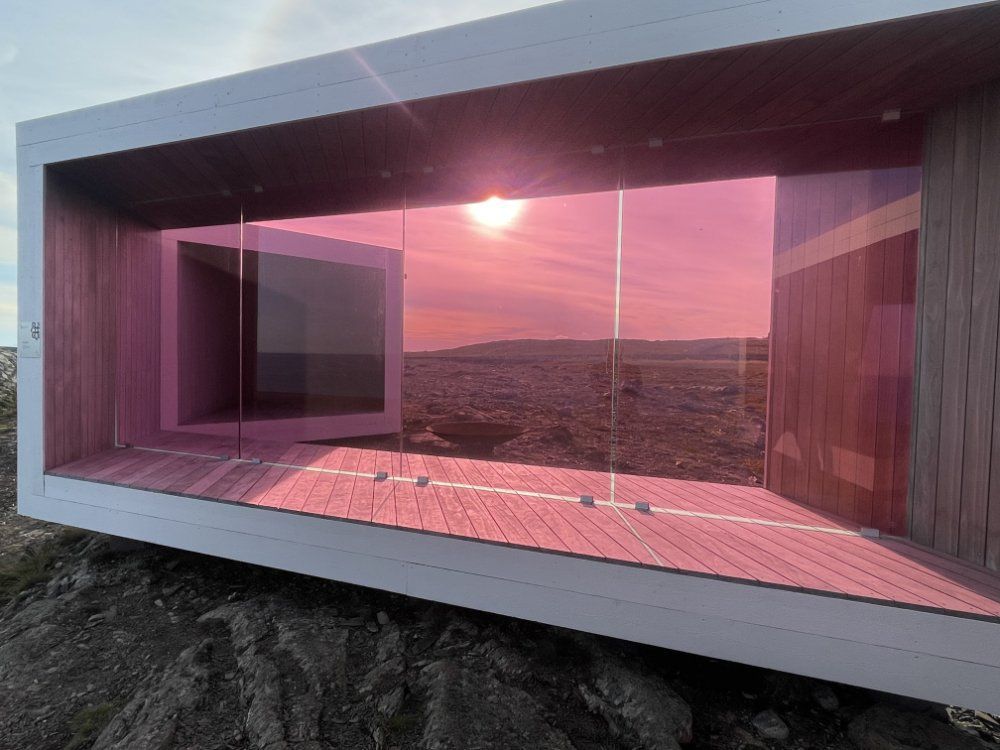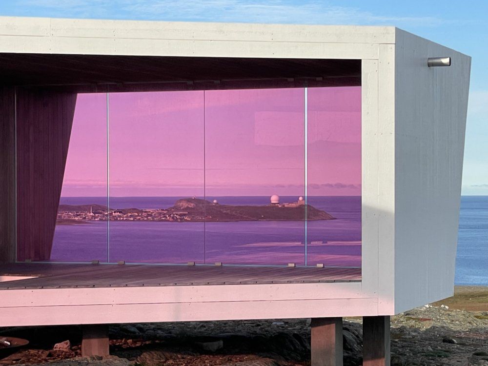 Kurz nach Vardo stoppen wir beim Aussichtspunkt Domen. Ein kurzer Spaziergang und wir staunen einmal mehr über die architektonische Vielfältigkeit und Einmaligkeit der Norweger für Aussichtspunkte und WC-Anlagen.