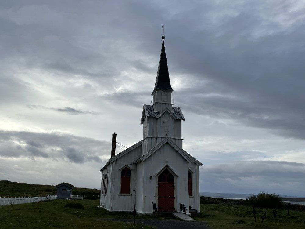 Wir stoppen bei der Nesseby Kirche. Hier haben wir vor 8 Jahren zu dritt eine schöne und ruhige Nacht verbracht. Kamen Einheimische oder Besucher der Kirche vorbei hat man sich freundlich gegrüsst.