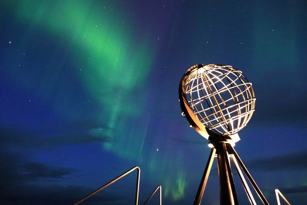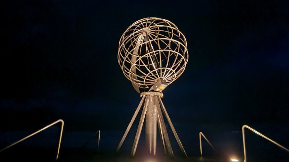 .... wir haben genau die eine Lücke zwischen den kurzen, intensiven Regenschauern erwischt und Nordlicht mit Nordkappkugel fotografiert!!!