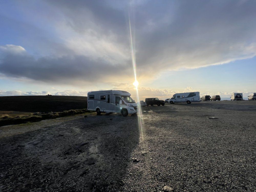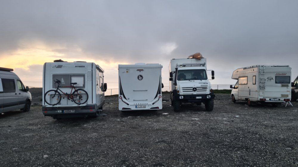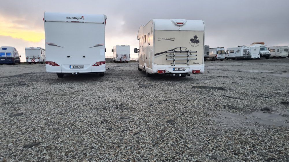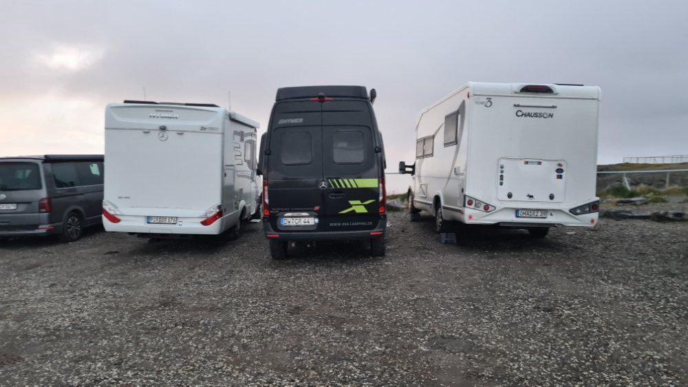 Wir parkieren um. Später können wir aber noch weitere Kuschelcamper-Aktionen beobachten. Die einen können kaum noch ihre Türen öffnen! Wo ist der gesunde Menschenverstand nur geblieben?