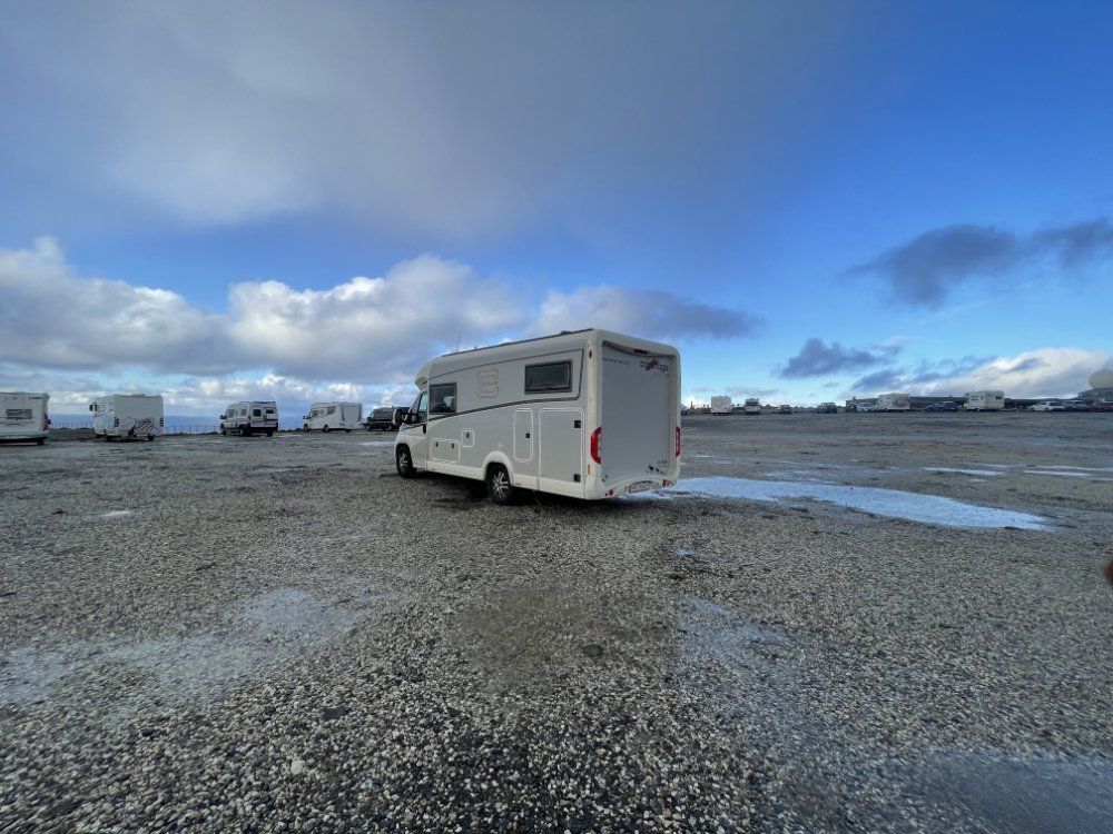 Wir entscheiden uns auf dem sehr grossen Parkplatz vom Nordkapp in die riesige, leere Mitte zu parkieren.
