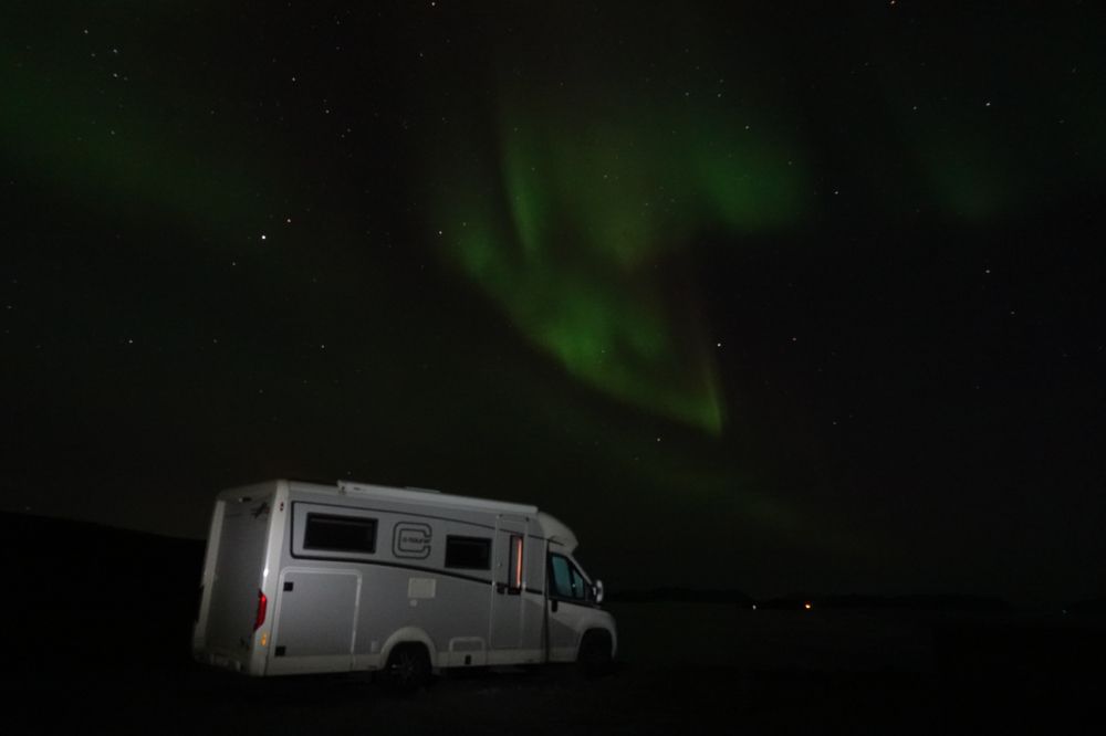 Irgendwann verblassen die Nordlichter, der Wind lässt nach und wir schlafen zufrieden ein.