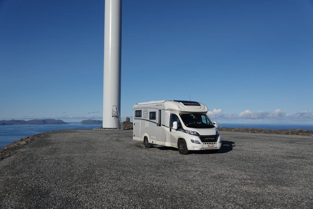 Die Windräder in Havoysund sind fertig ersetzt und neue wurden aufgestellt, somit kann man wieder hoch zum Arctic View fahren. Voller Spannung nehmen wir die happige Steigung in Angriff. Wieviele stehen da oben?