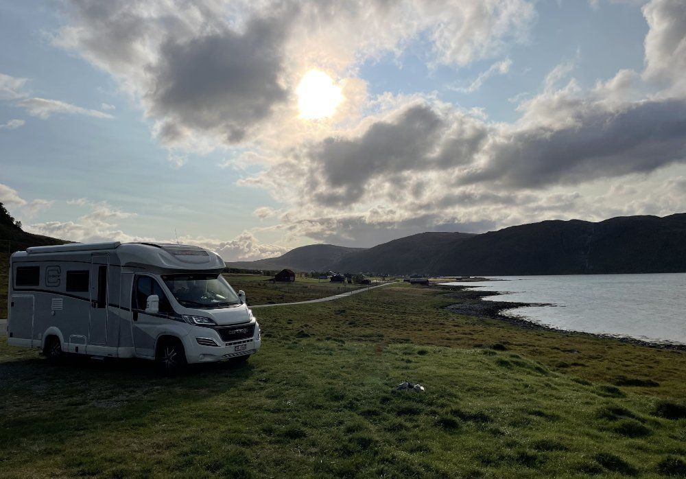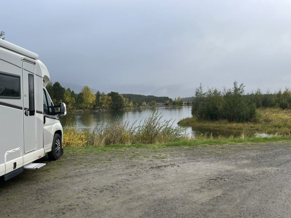 In Bardufossen tanken wir den bis jetzt günstigsten Diesel von Norwegen, füllen unsere Gastankflasche und tätigen einen kleinen Einkauf beim Kiwi. Auf dem Parkplatz machen wir auch gleich Mittagspause und beobachten den Trubel an der günstigen Tankstelle und den Trubel beim Womohändler gleich nebenan, der ab heute Herbstmesse hat. Die Womos fahren fast im Sekundentakt ein.