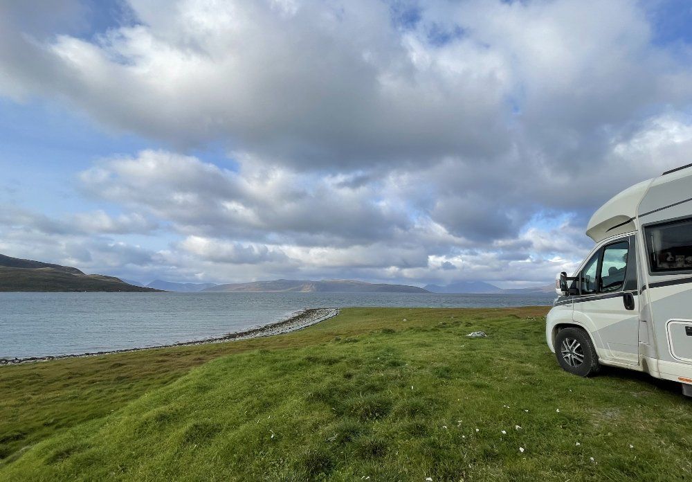 Hier machen wir auf einem Campingplatz Schluss für heute und stossen auf meinen Geburtstag an.