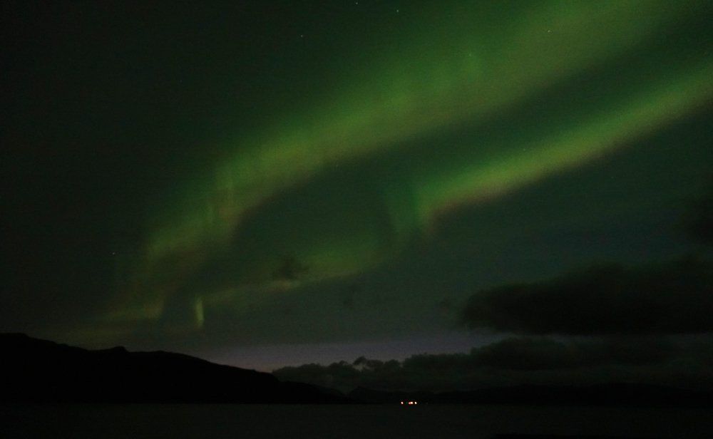 Auch heute können wir die Nordlichter wieder bestaunen, sie sind einfach nicht ganz so intensiv - aber immer noch schön!