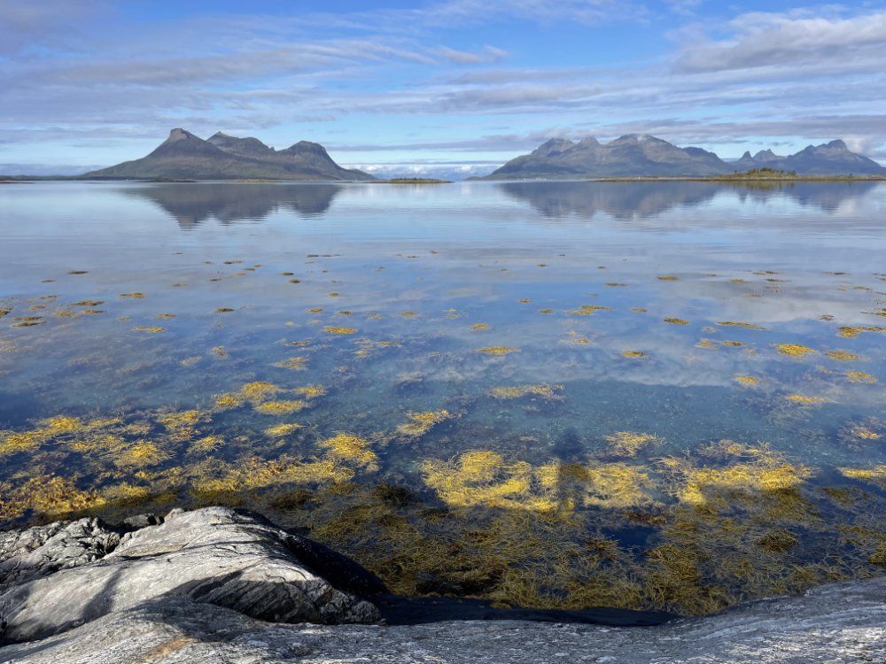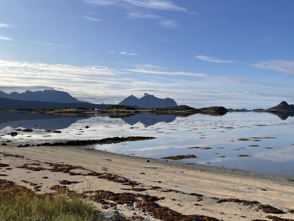 Auch der Morgen überrascht uns mit traumhaftem Wetter, wir können uns fast nicht losreissen von diesem herrlichen Platz. Irgendwann gegen 11 Uhr starten wir dann doch und fahren weiter. Jeder Meter ein Genuss. Engeloya steht den Lofoten in gar nichts nach - und das Beste - wir sind bei unserer Umrundung der Insel das einzige Womo, lediglich ein paar PW's begegnen uns.