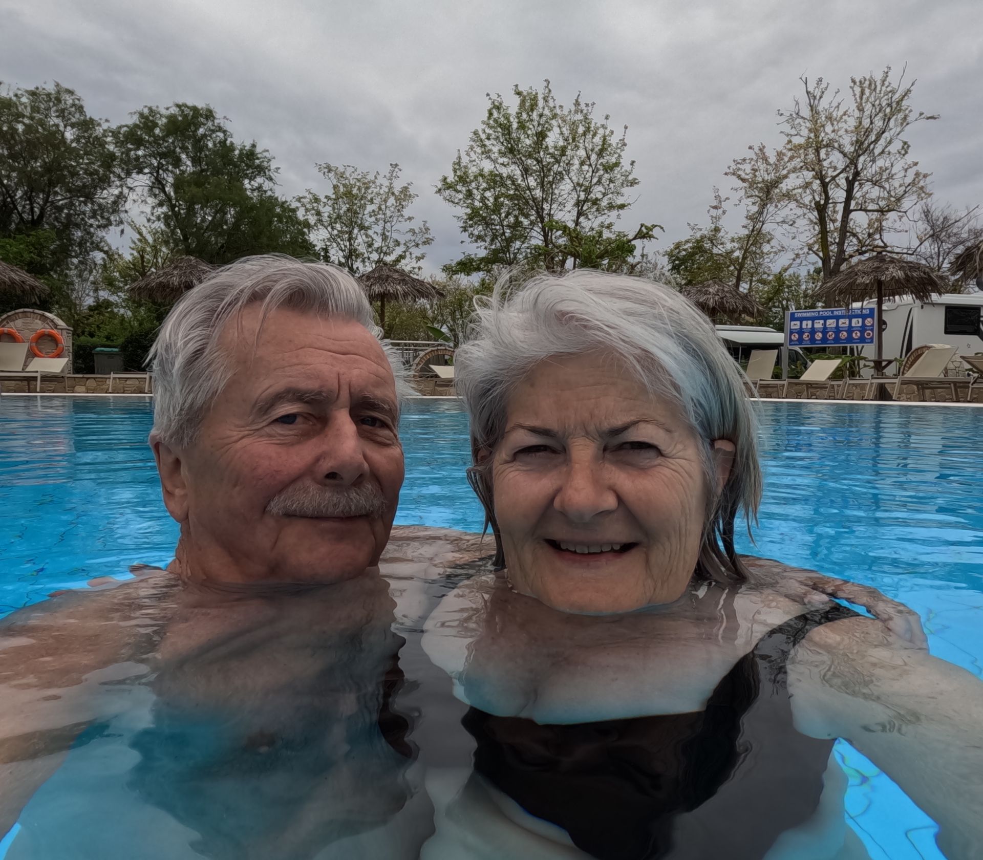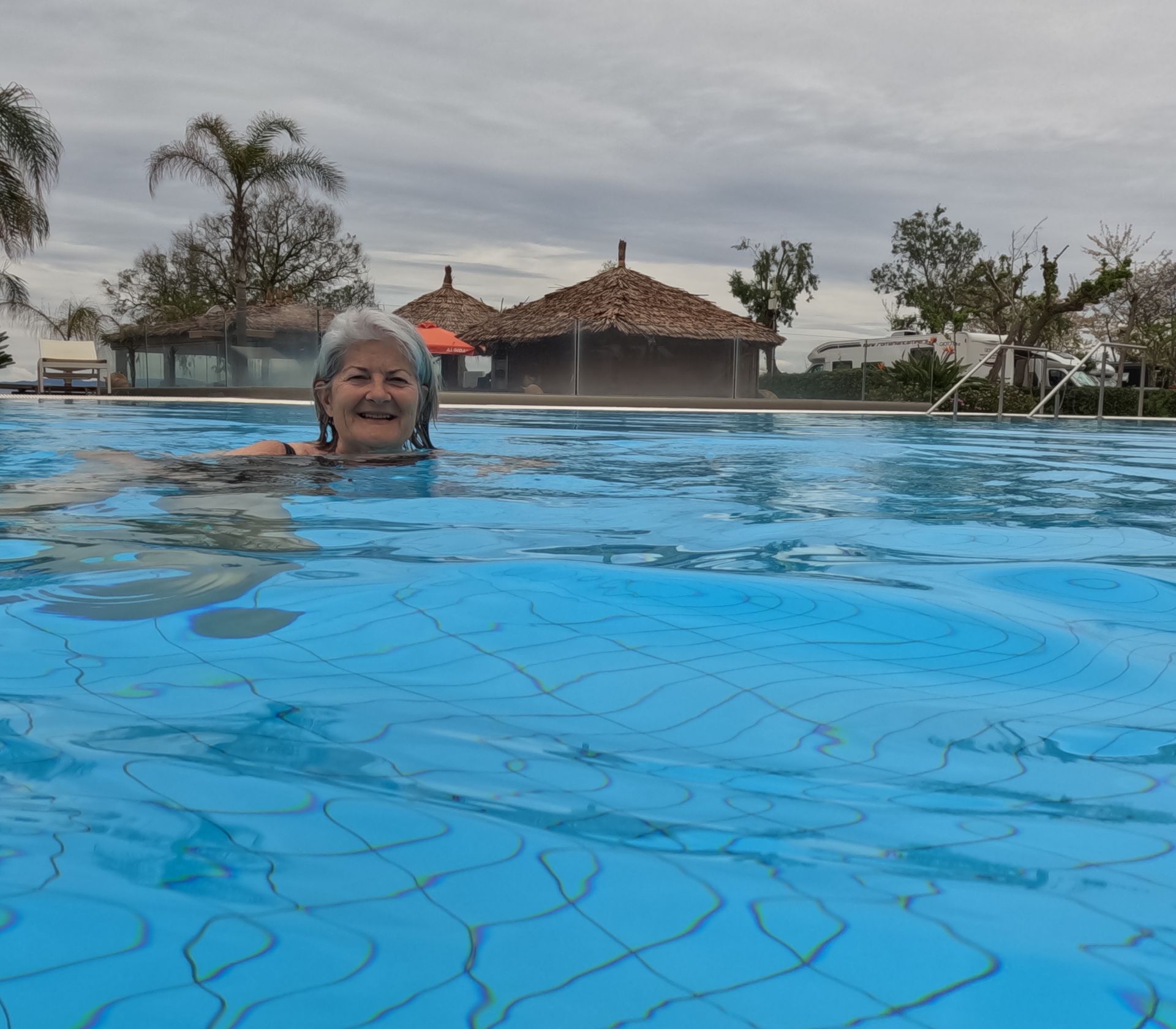 Aber auch im Pool haben wir wieder mutterseelenallein einige Längen absolviert. Nach dem kalten Meer und doch auch kühleren Luft ist das Poolwasser richtig warm.