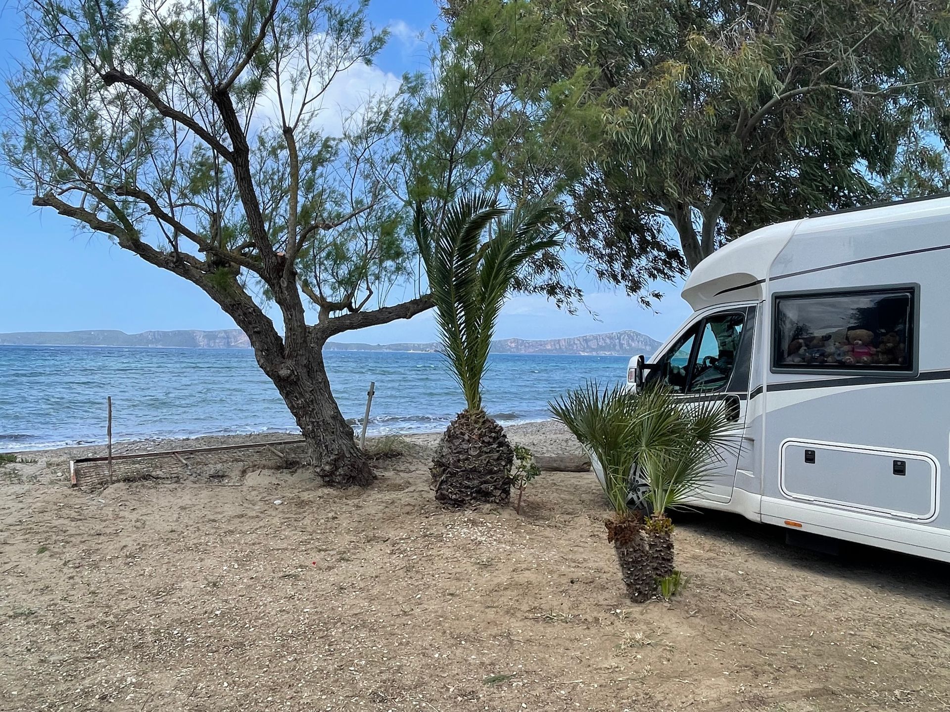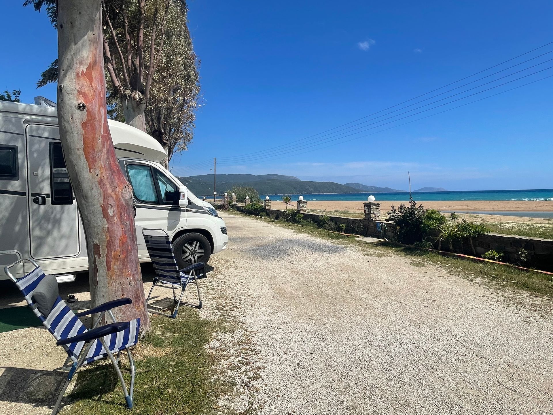 Stellplatzkosten: Camping Ionion Beach 29.00 Euro, inkl. V/E, ohne Strom, erste Reihe