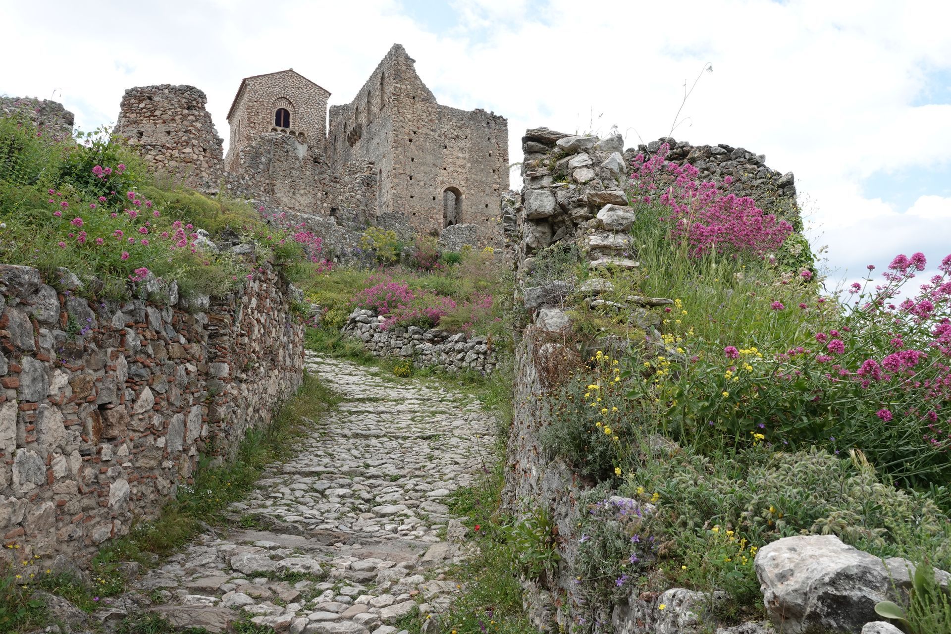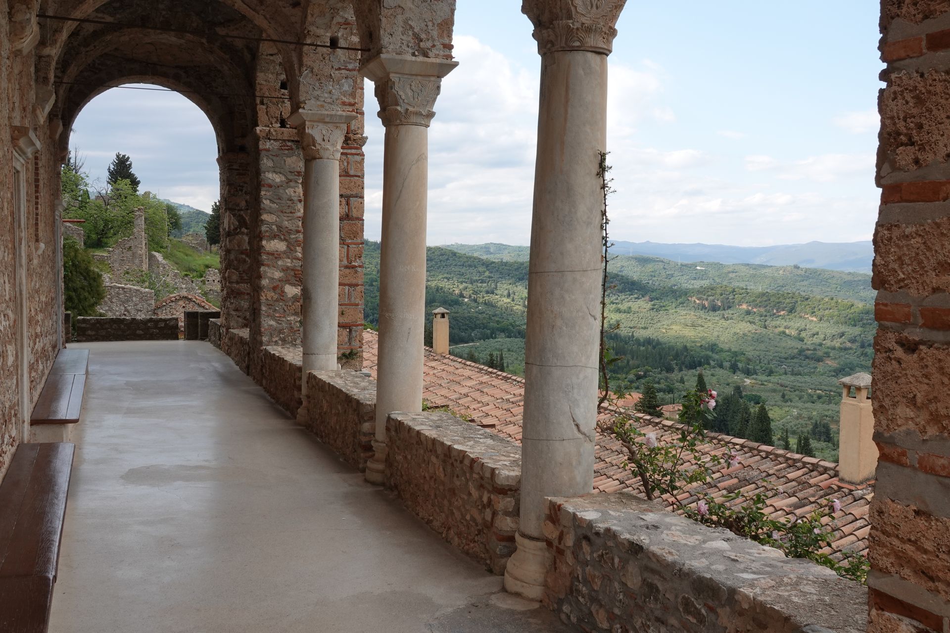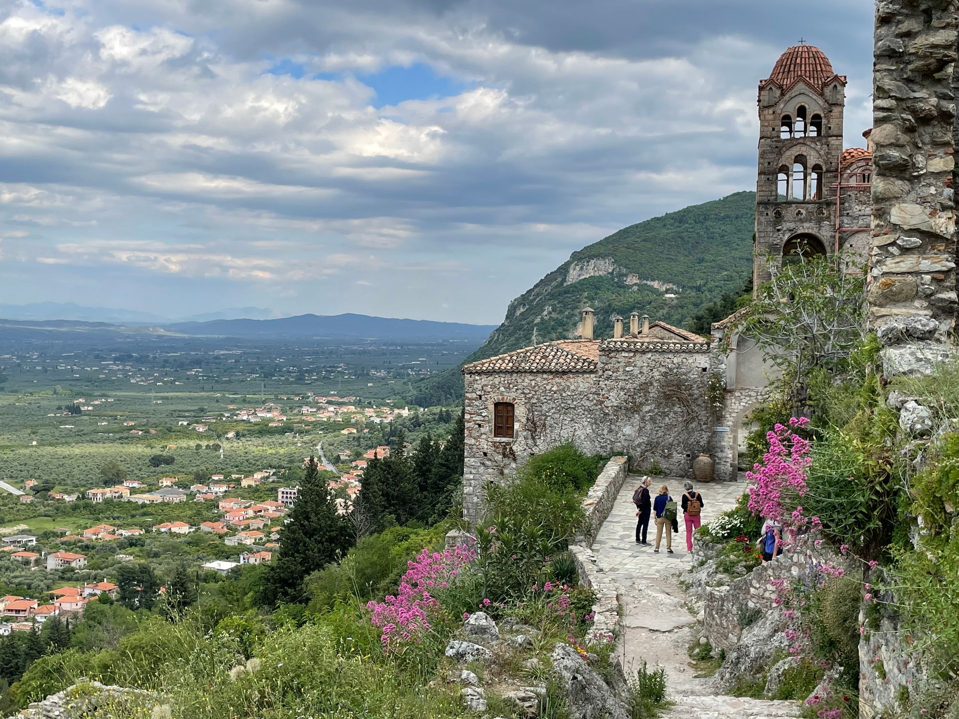 Bei Mystras angekommen entscheiden wir uns für den Parkplatz unten beim Haupteingang. Wir steigen lieber zuerst hoch. Und wer schon mal in Mystras war weiss, dass es steil nach oben geht, dass es hunderte von Stufen und einige Höhenmeter sind bis man endlich oben beim Castle ist und die tolle Aussicht geniessen kann.