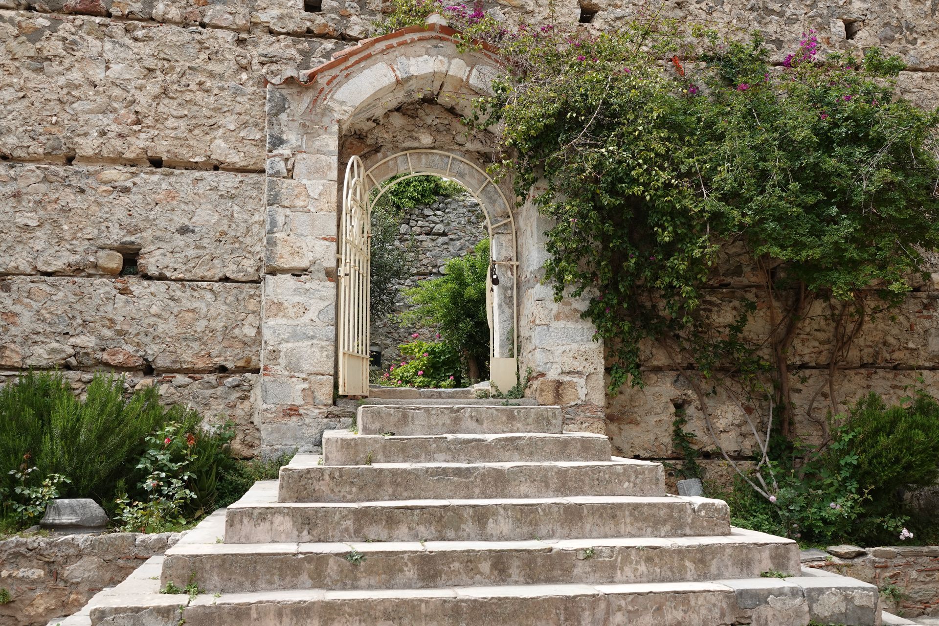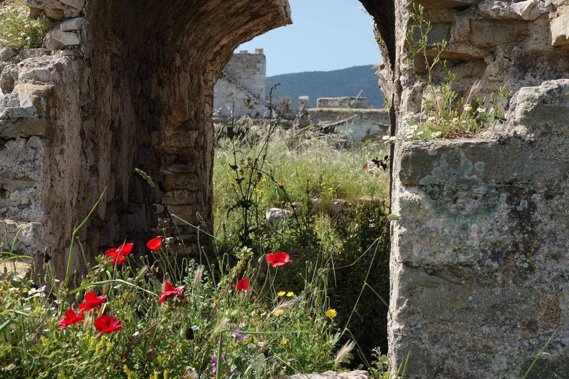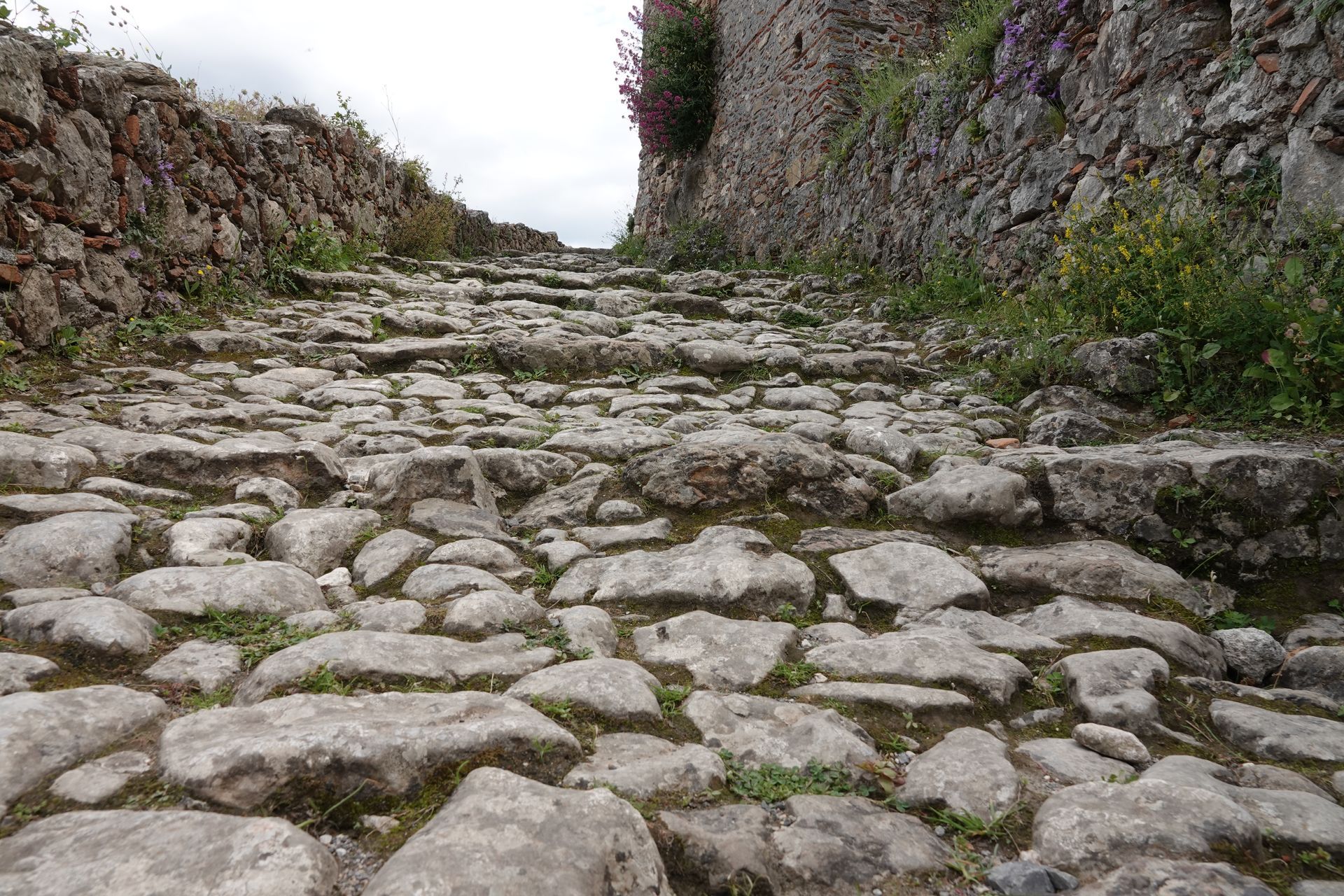 Bei Mystras angekommen entscheiden wir uns für den Parkplatz unten beim Haupteingang. Wir steigen lieber zuerst hoch. Und wer schon mal in Mystras war weiss, dass es steil nach oben geht, dass es hunderte von Stufen und einige Höhenmeter sind bis man endlich oben beim Castle ist und die tolle Aussicht geniessen kann.