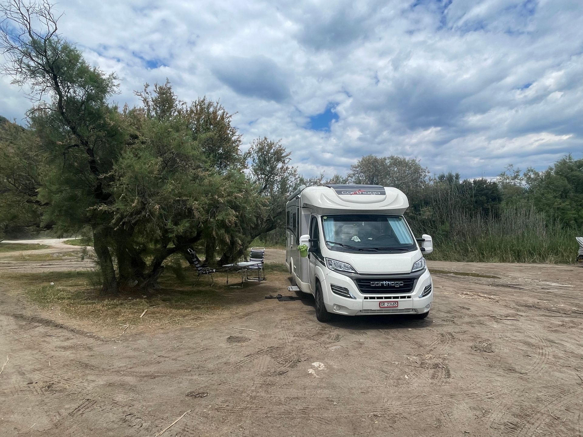 Der zweite Campingplatz oben auf dem Hügel hat noch viele freie Plätze aber der Wind peitscht über die Höhe.
