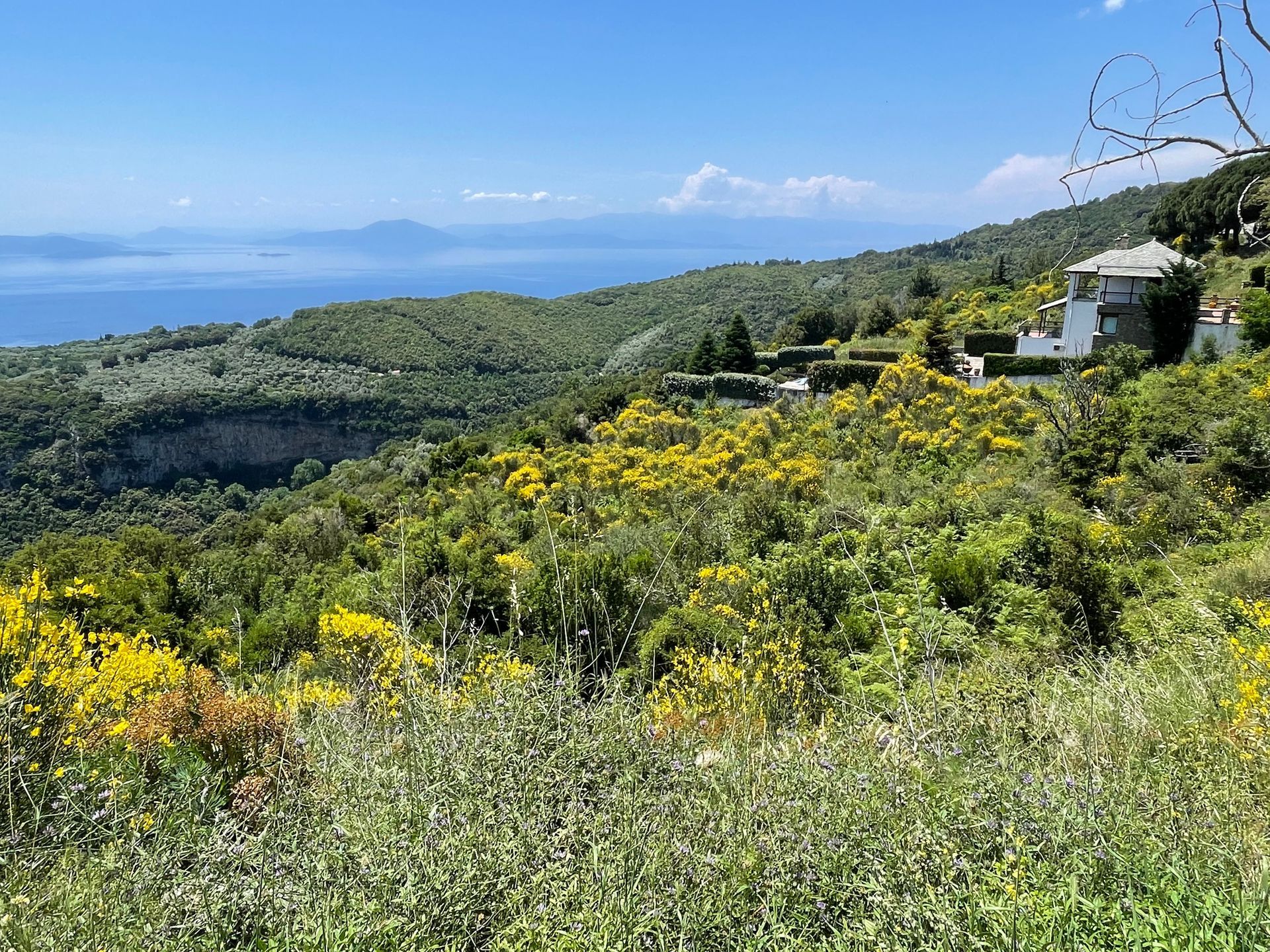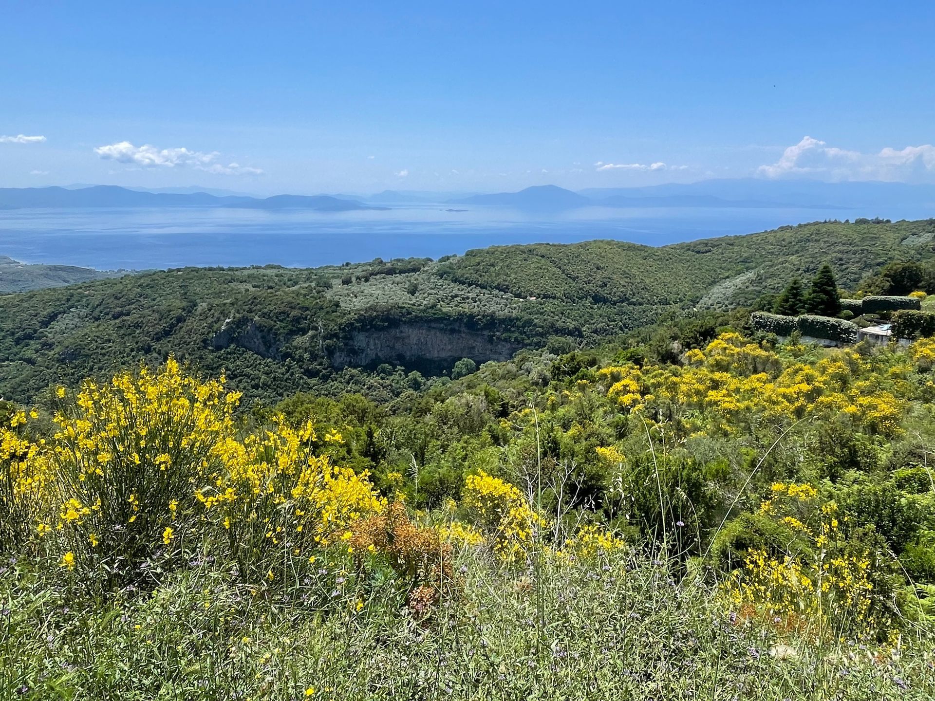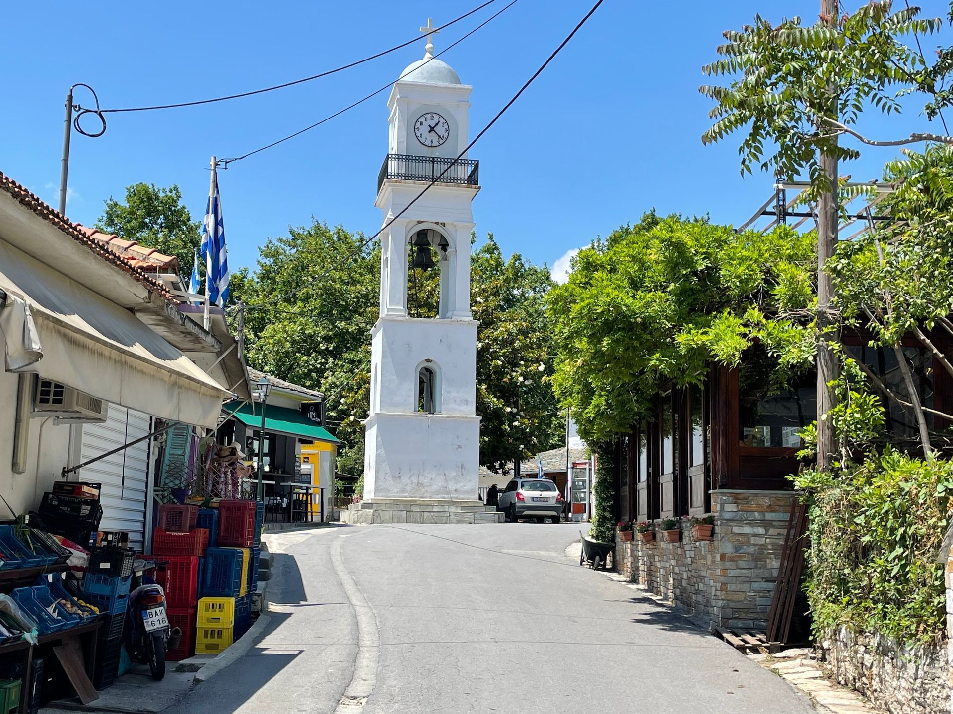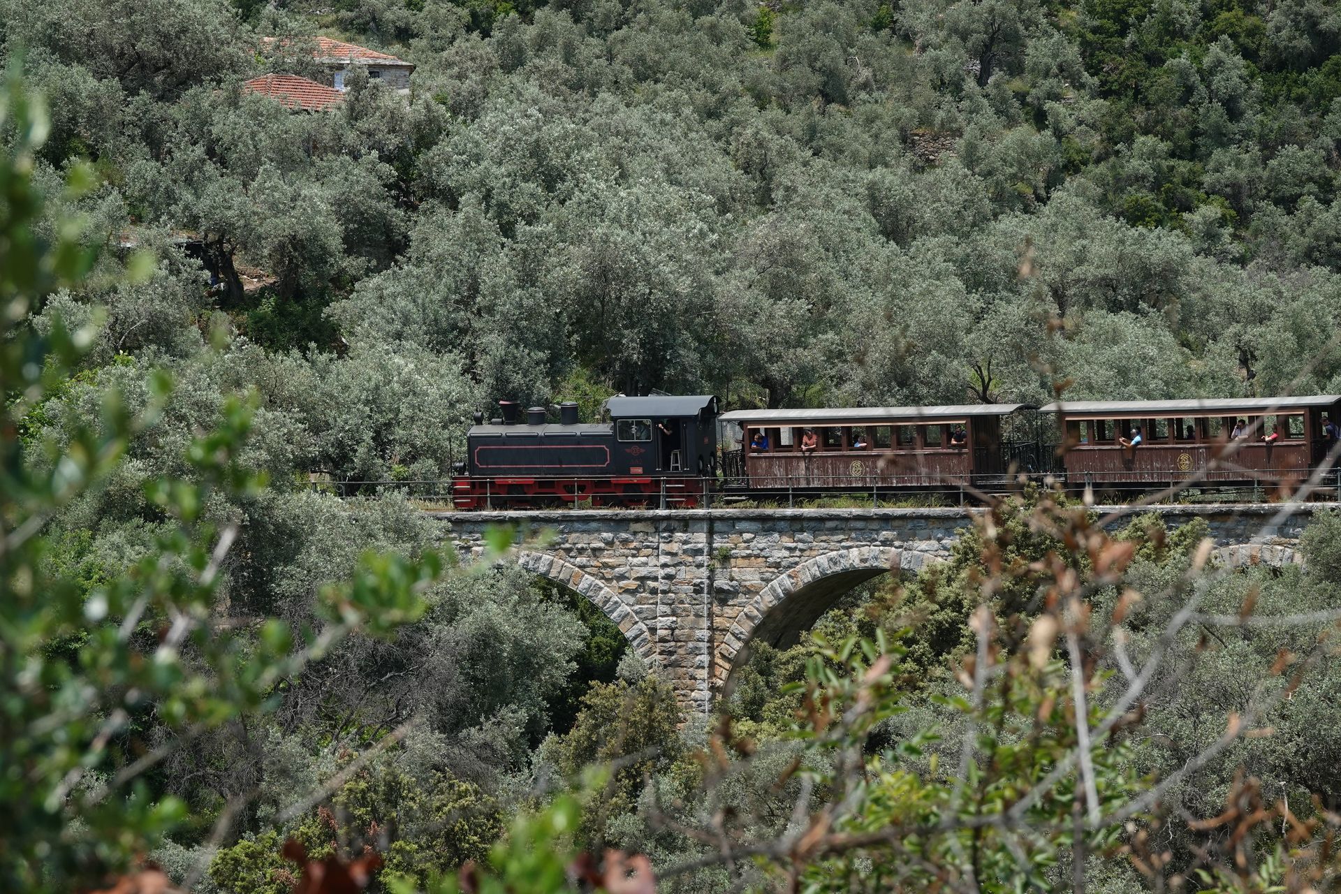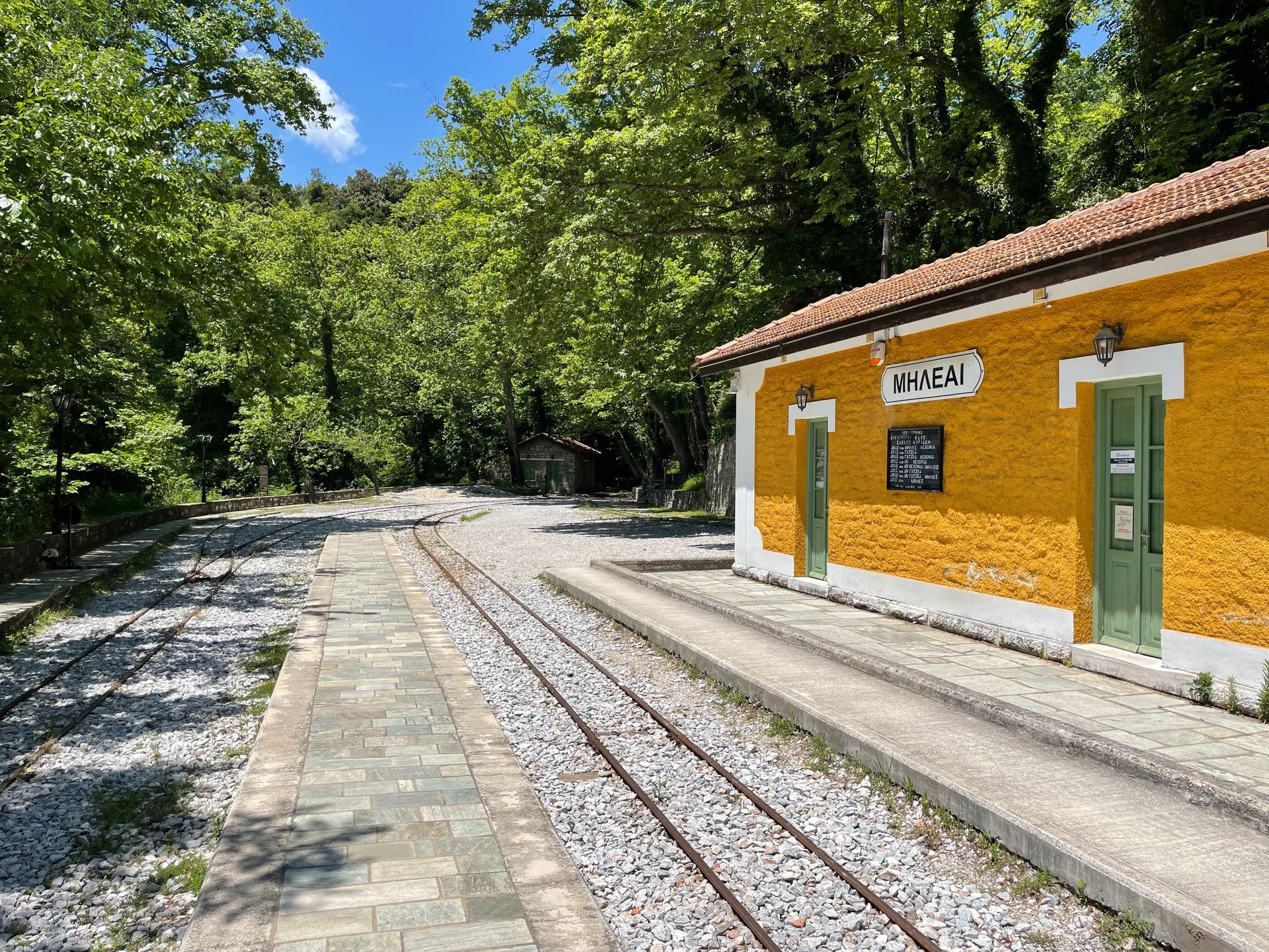 Heute gehts mit den E-Bikes noch weiter nach oben. Da die Küstenstrasse sehr stark befahren ist weichen wir aus und fahren in die Höhe. Hansruedi hat auf Komot eine tolle Rundtour herausgesucht. Nach 12 km haben wir 700 Höhenmeter überwunden und geniessen die Aussichten. Wir durchfahren auch schöne, urige Dörfer - Pinakates, Vyzitsa und Miles. Wobei in Miles am meisten los ist. Hier ist die Endstation der Museumsbahn - Souvenirshops und viele Restaurants säumen die Dorfstrasse, dabei ist der Bahnhof sehr weit vom Dorfkern entfernt. Das Dorf scheint aber auch sonst ein beliebtes Ausflugsziel zu sein. Für griechische Verhältnisse gibt es hier viele Parkplätze.