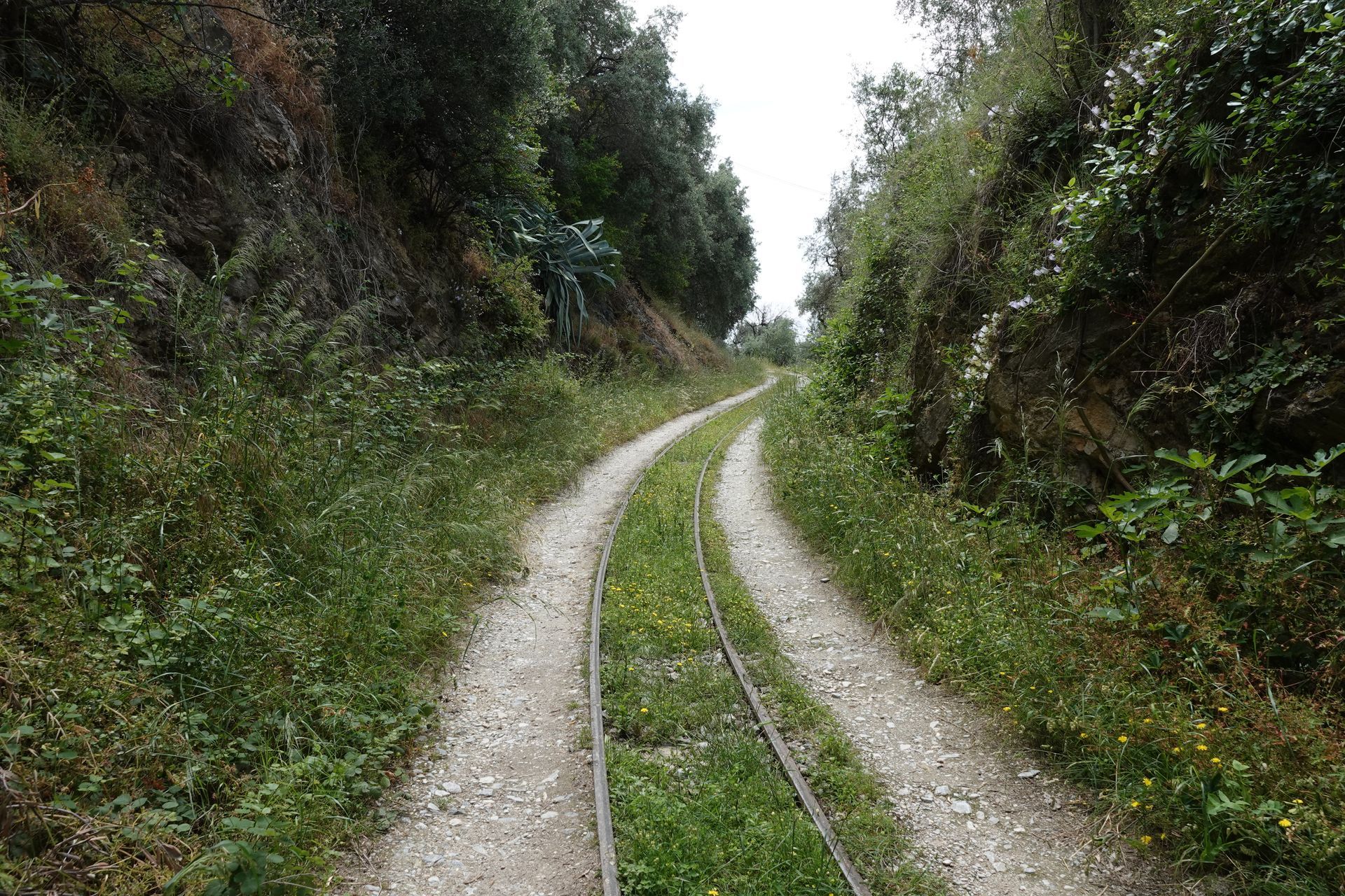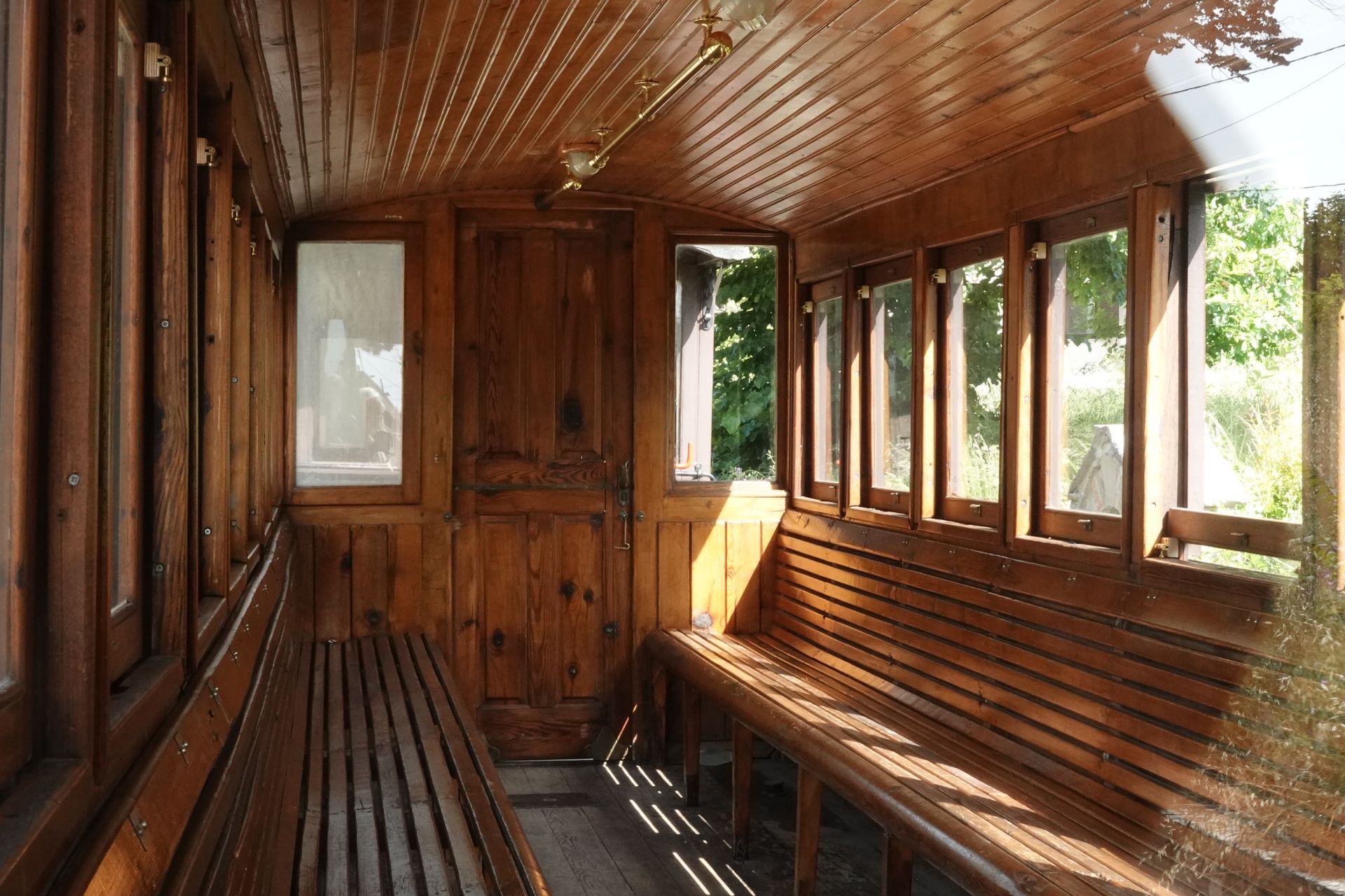 2 Kilometer wandern wir aufwärts, 200 Höhenmeter überwinden wir, 14% Steigung und dann sind wir oben bei der Bahn. Jetzt im Mai und auch noch im Juni fährt die Bahn nur Samstag und Sonntag und so kann man wunderbar dem Trasse entlang wandern und die Aussichten geniessen.