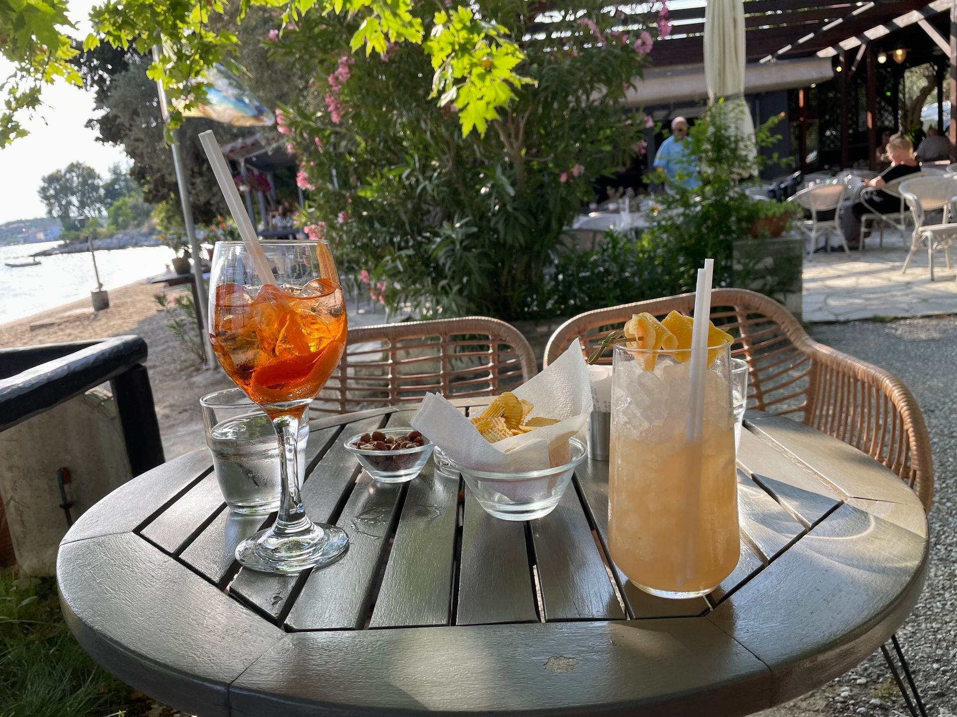Heute ist wieder wandern angesagt. Im Dorf steuern wir als erstes eine Taverne an, es ist Zeit für das Mittagessen.