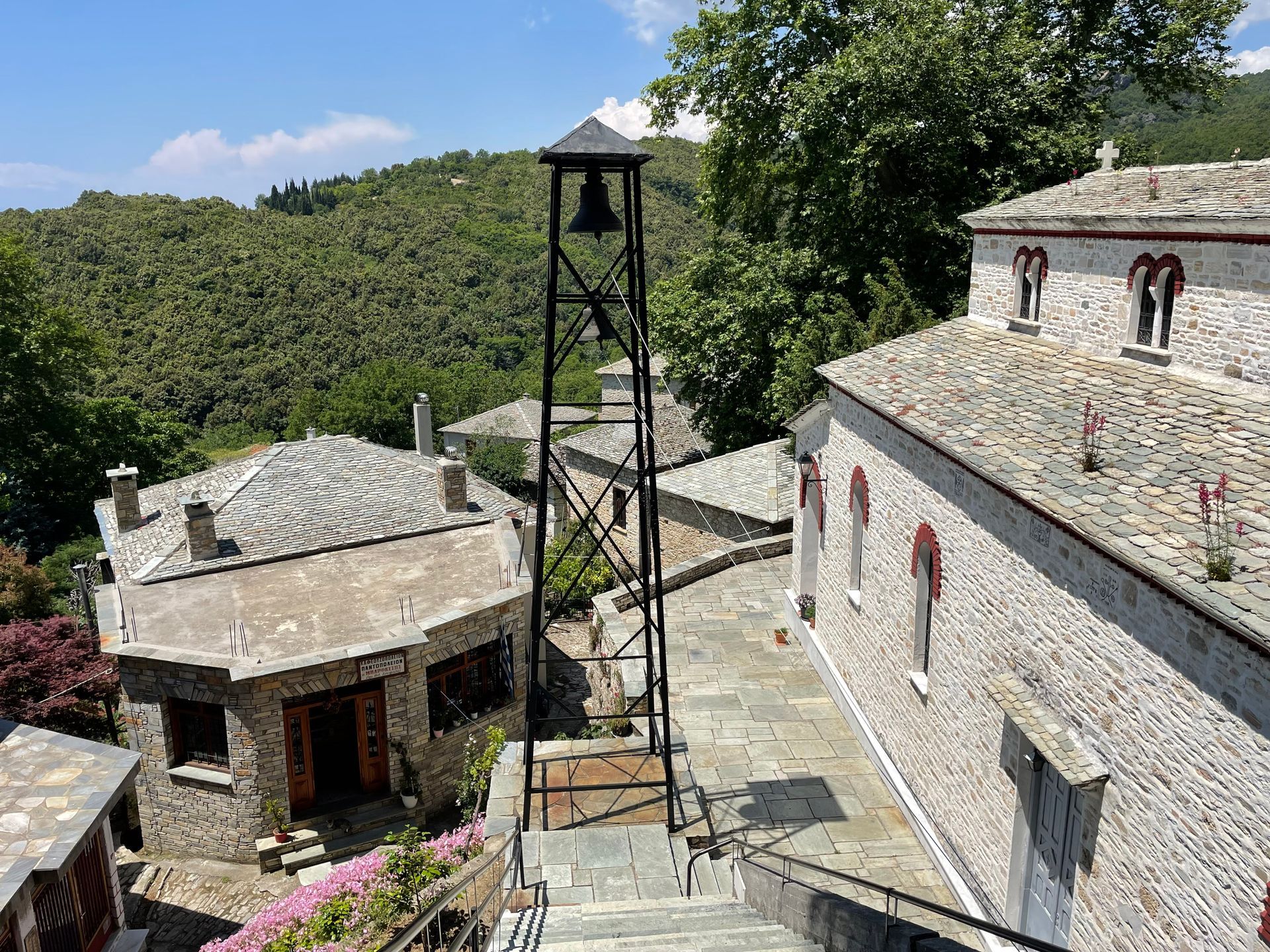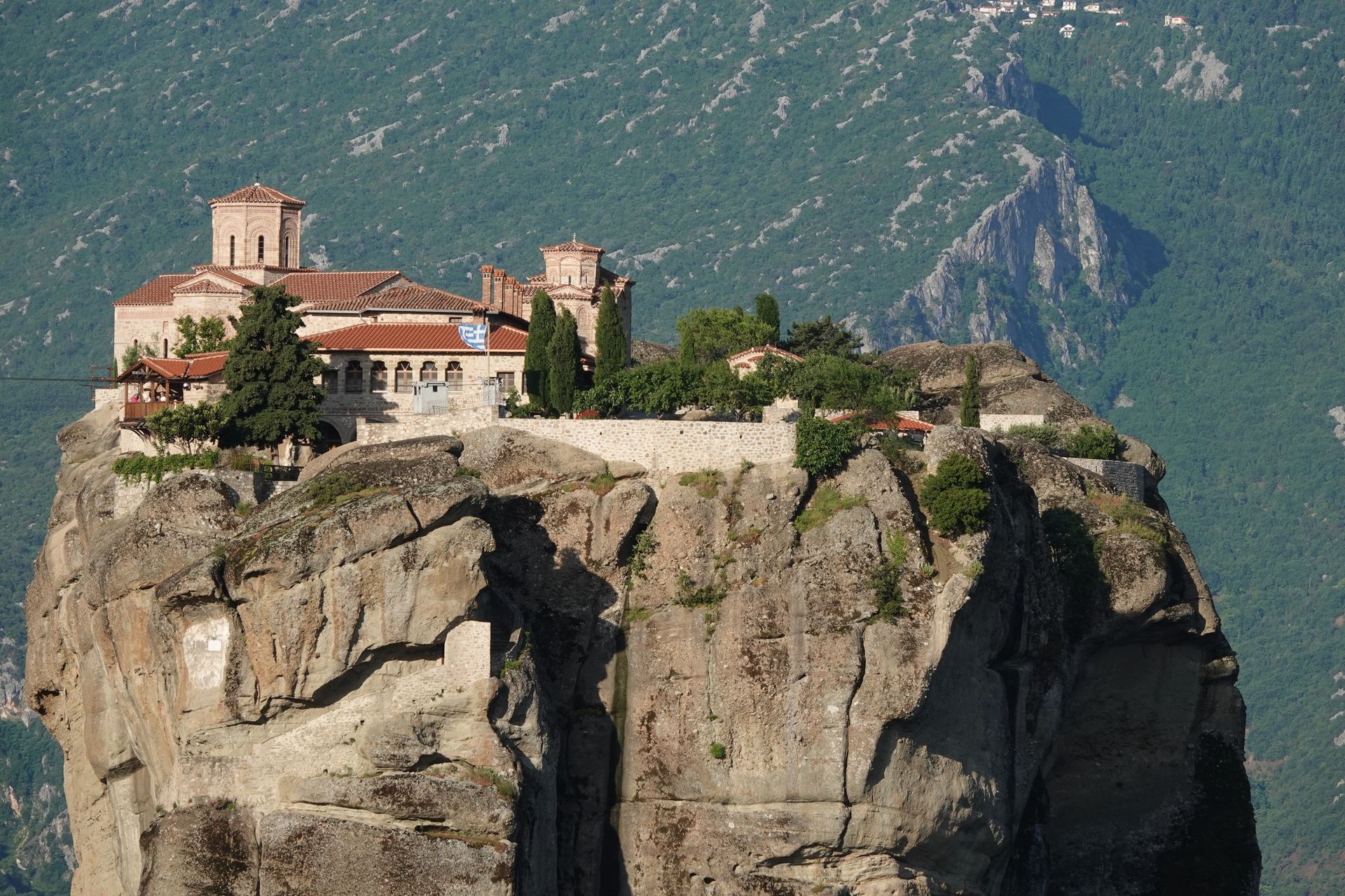 Kurz nach 6.00 Uhr kommt eine Gruppe, die unbedingt den Sonnenaufgang fotografieren wollen bald wieder erfolglos verschwinden. Nach den obligaten zwei Kaffees zügeln wir zum Kloster Agios Stefanos. Der Parkplatz etwas oberhalb ist um 7.30 Uhr noch leer und wir können bestens parkieren und mit Aussicht frühstücken.