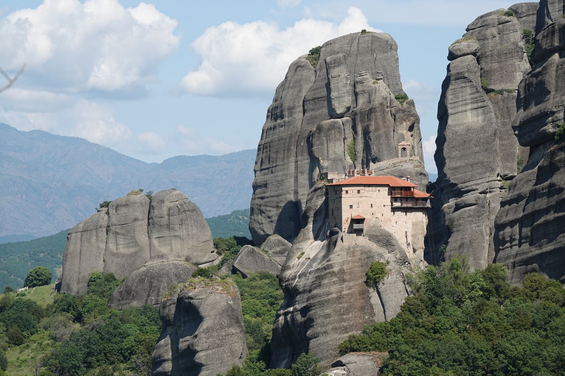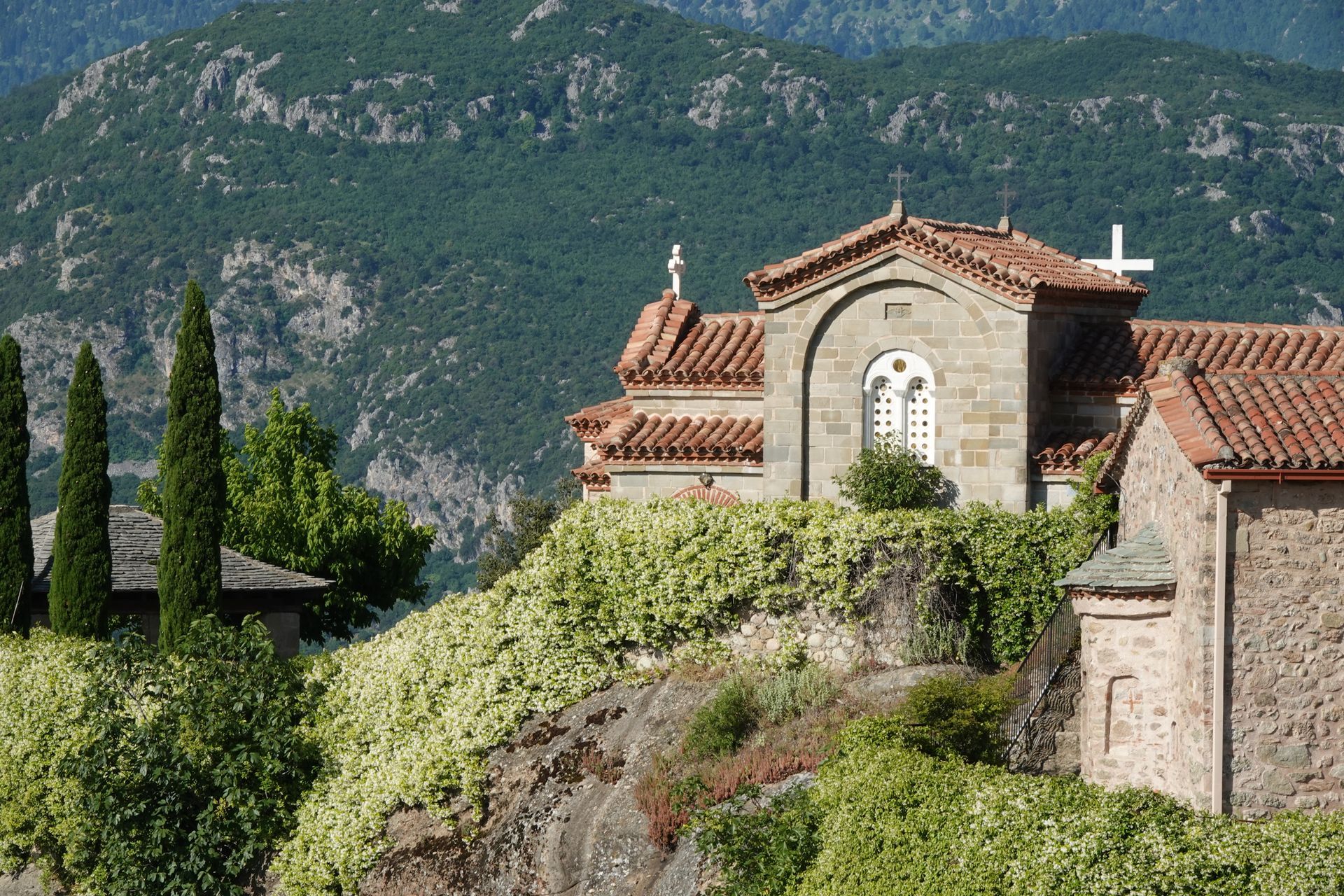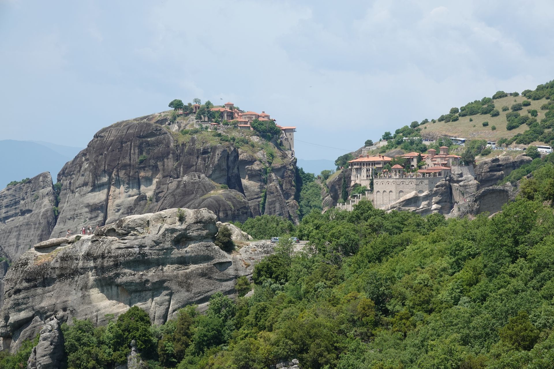 Nach einem kleinen Mittagsimbiss laden wir die E-Bikes aus und fahren runter zu den Klöstern und Aussichtspunkten. Hier ist viel los. Zahlreiche Reisebusse und viele PW's säumen den Weg und belegen jeden verfügbaren Parkplatz. Wir schlängeln uns mit den Bikes überall durch, geniessen die Ausblicke und machen uns dann aber gegen 15.00 Uhr wieder auf den Heimweg zu unserem Pfüdi. Der Himmel wird immer schwärzer und wir hören Donnergrollen. Es dauert noch, aber dann kommt das Gewitter, sogar kleine Hagelkörner prasseln aufs Womodach. Aber bald ist der Spuk vorbei und die Sonne zeigt sich wieder, wenn auch etwas zaghaft.