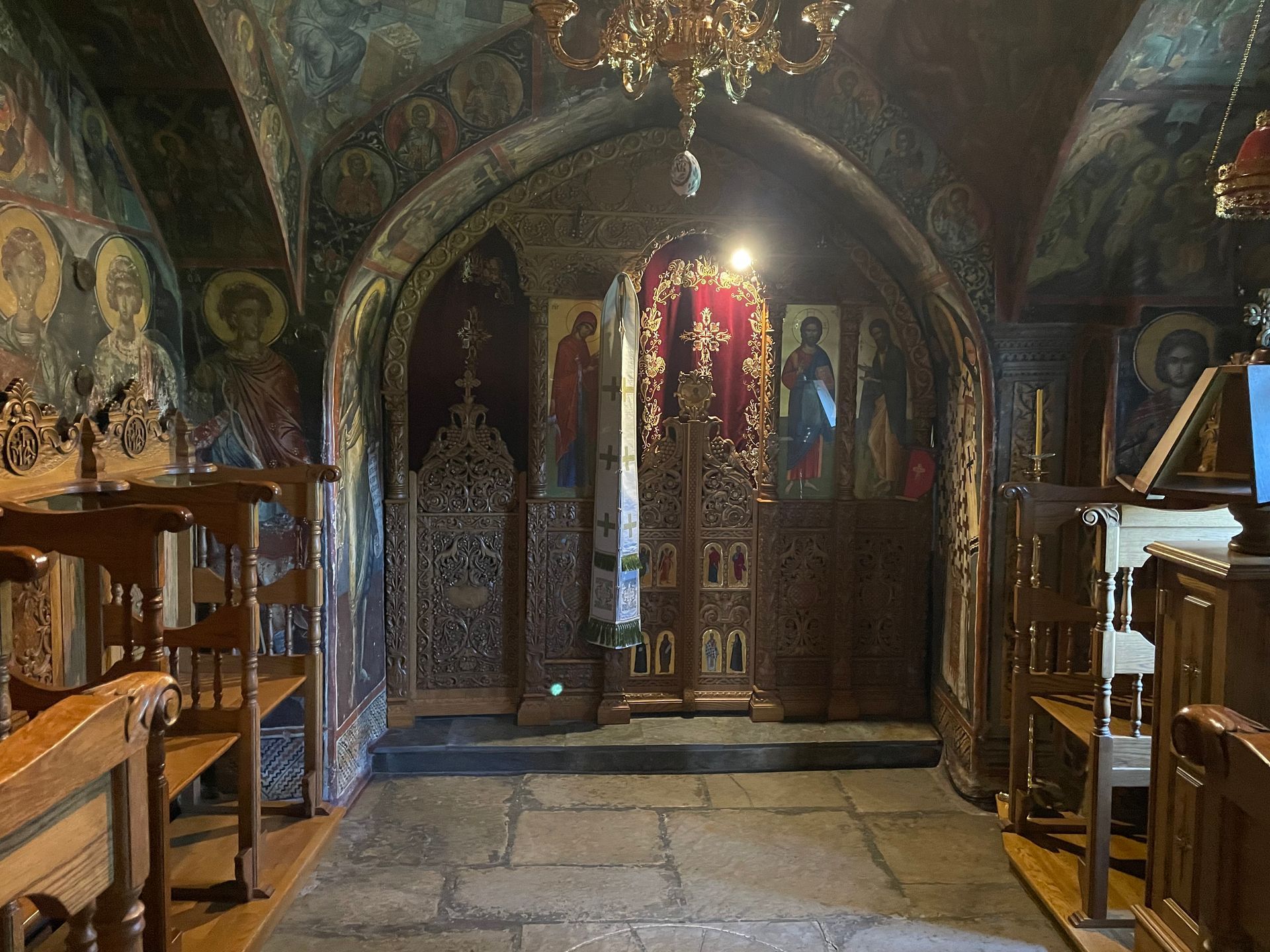 Sonntags öffnet das Kloster erst um 9.30 Uhr, das haben wir übersehen, sind aber nicht die einzigen.