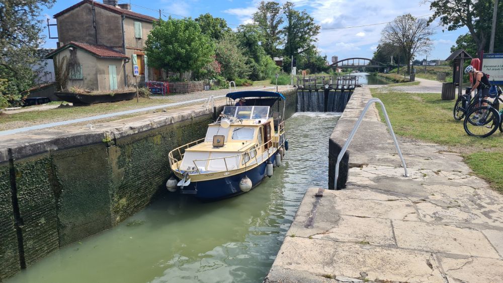 So gestärkt gondeln wir dem Canal Garonne entlang. Wir geniessen die Fahrt, können bei den Schleusen aber leider nur zwei Schiffe beobachten.