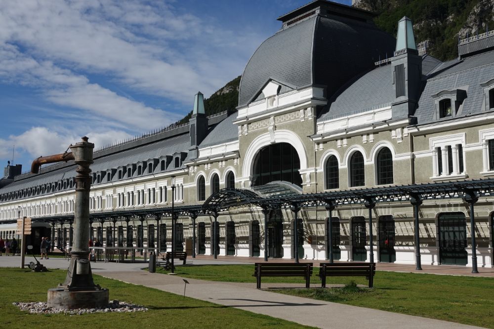 Estación de Canfranc. Die Mischung aus renoviertem Teil und dem Verfall überlassenen Teil ist interessant. Alte Züge stehen da aber nur noch ganz wenige. Eigentlich Schade.