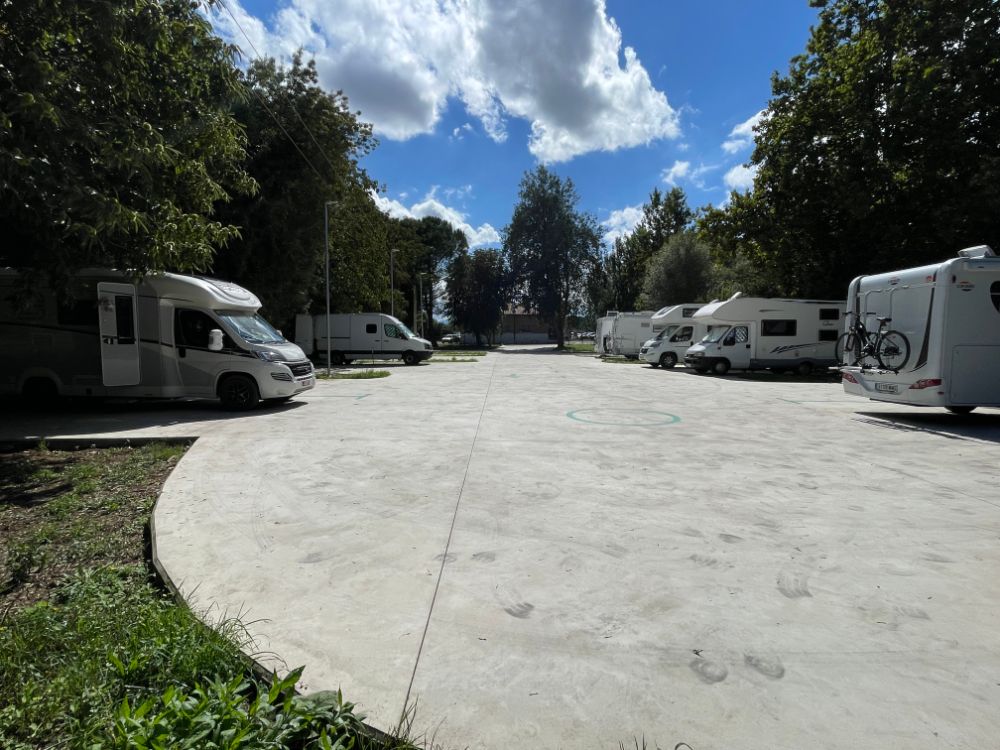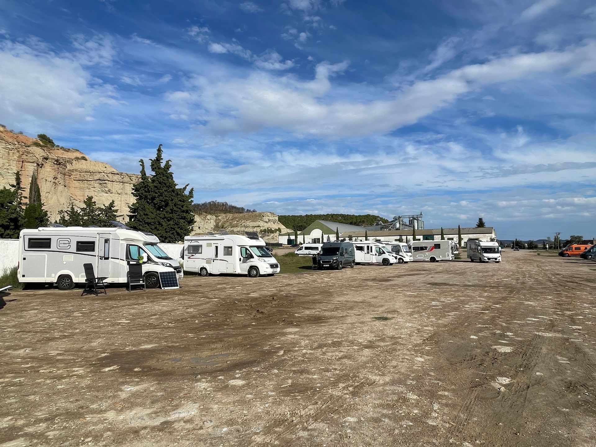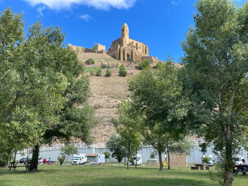 Kurz nach 16.00 Uhr erreichen wir Argueda. Der offzielle Stellplatz ist bereits voll. Auf dem angrenzenden Schotterparkplatz stehen auch bereits einige Womos, aber wir finden noch problemlos ein Plätzchen.