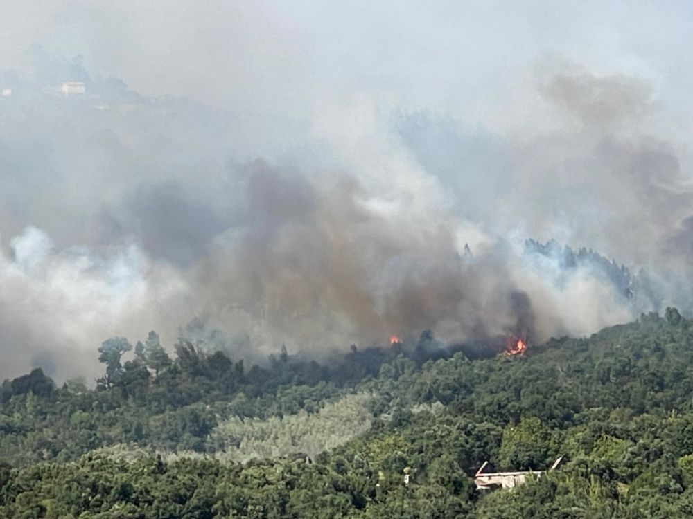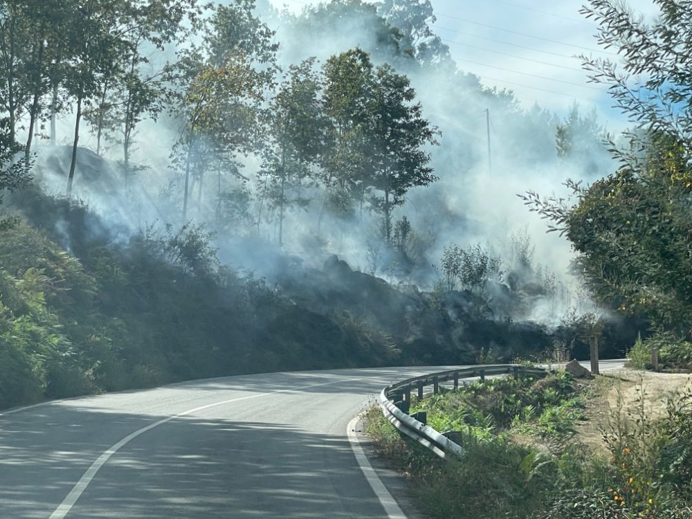 Die Rauchschwaden ziehen Richtung Porto, Richtung Meer. Unser angepeilter Stellplatz wäre ja gar nicht schlecht, aber morgen wären wir und der Pfüdi wohl Rauchwürstchen. Auf der Weiterfahrt treffen auch wir auf einen Brandherd. Die Feuerweht steht bereit und lotst den Verkehr wechselseitig durch die Gefahrenstelle.