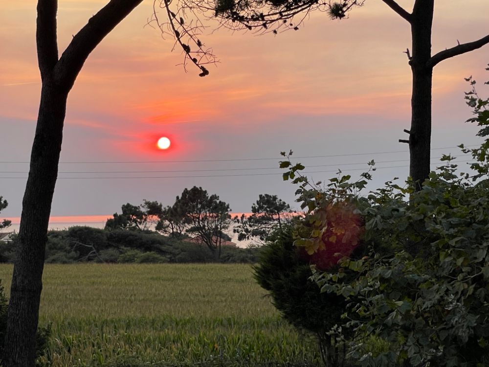 Tja, die Wettersymbole oben würden eigentlich schon der Tatsache entsprechen, wenn da die gewaltigen Rauchschwaden der Waldbrände nicht wären. Über Nacht hat uns die rauchgeschwängerte Luft wieder voll eingeholt und die Sonne geht auch heute wieder blutrot auf.