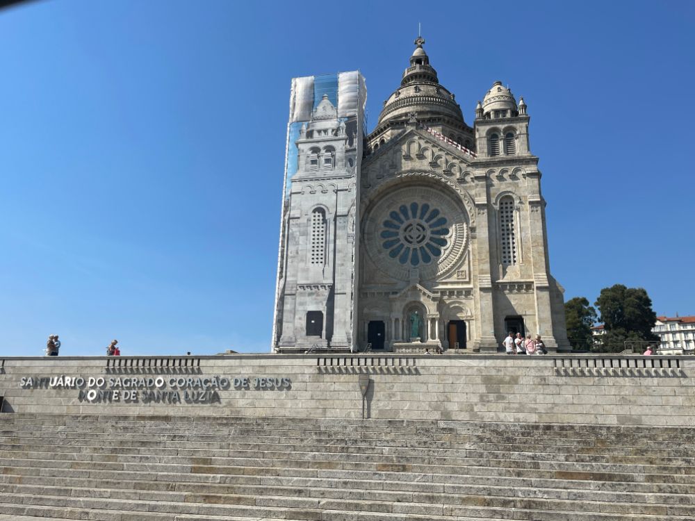 Wir entscheiden uns, dem Meer entlang nordwärts zu fahren. Als erstes stoppen wir in Viana do Castelo. Der Stellplatz ist eigentlich schon fast übervoll. Aber wir erwischen eine recht schöne Ecke für einen ausgiegigen Mittagshalt, den wir richtig gniessen. Aber zum Übernachten wollen wir nicht bleiben, zumal uns die Rauchwolken wieder einholen. Aber wir fahren noch hoch zum Heiligtum der Santa Luzia. Die Aussichten sind toll, das Heiligtum betrachten wir nur von aussen. Dann fahren wir weiter bis an die Grenze zu Spanien. In Vila Nova de Cerveira zeigt sich der Himmel endlich wieder blau und die Luft lässt uns frei atmen.