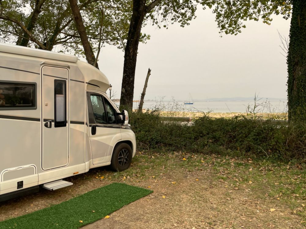 Der kostenlose Stellplatz ist noch erstaunlich wenig belegt. Während Hansruedi nochmals eine Putzaktion startet erkunde ich die Gegend dem