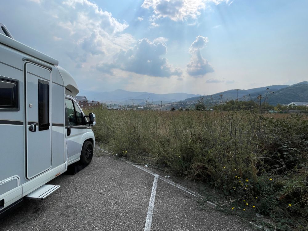 Der Stellplatz in Ponferrada ist nichts aussergewöhnliches. Wir entscheiden - für eine Nacht ist das ok.