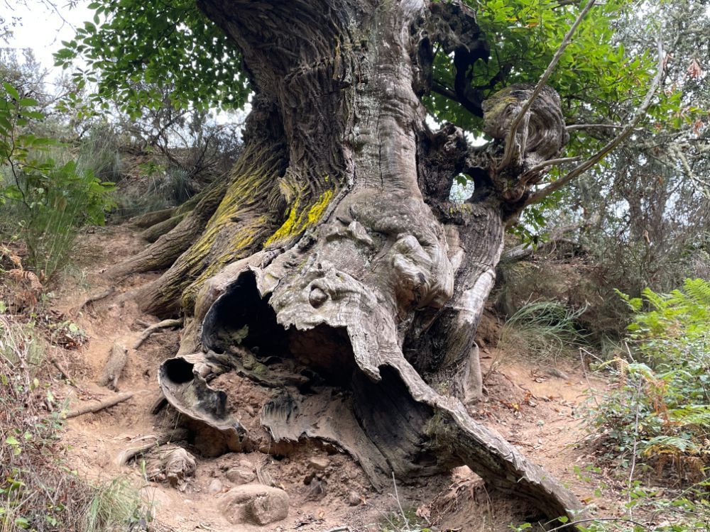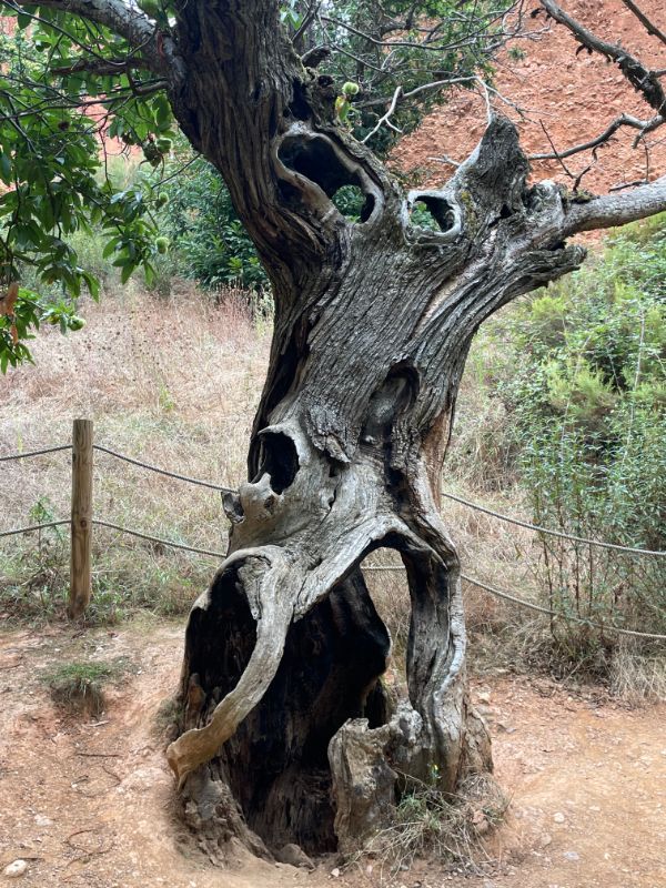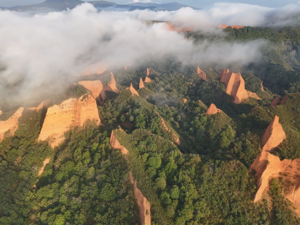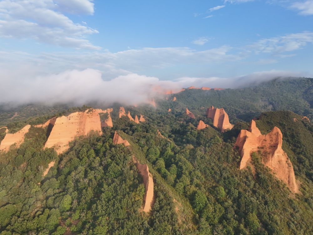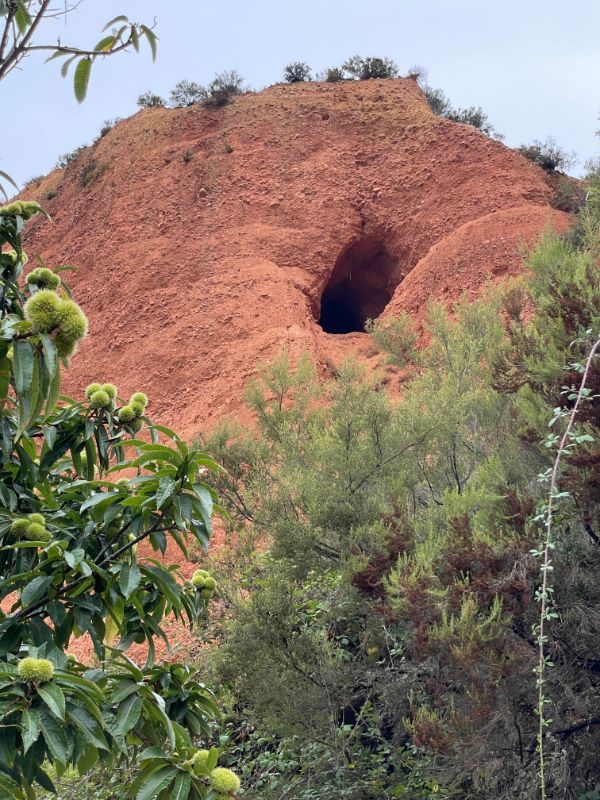 "Las Médulas - die runden Formen, die spitzen Profile, die aprupten Schrägen, dieser Eindruck eines gebrochenen Berges ist das Resultat eines der grossen Ingenieurswerke der antiken Welt. Der Berg ist abgetragen worden, nach und nach aufgelöst worden und in jedem seiner Ecken auf der Suche nach Gold abgeklopft worden. Was heute davon noch übrig ist, ist eine stillgelegte Mine. Die Mauern und die Bergrücken aus Ton. Der rötliche Farbton und die alten Baumstämme der Kastanienbäume erzählen eine hunderte von Jahren alte Geschichte."