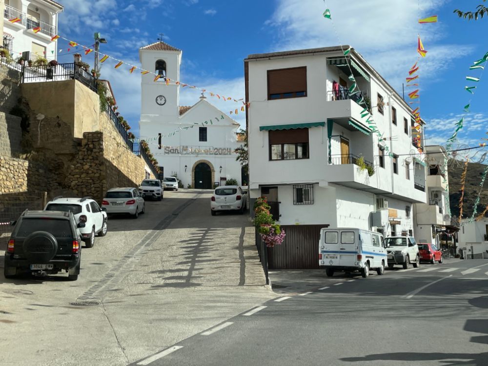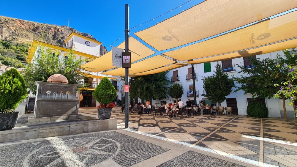 Wir Frühstücken ausgiebig und sind bis um 11.00 Uhr dann endlich bereit für unsere E-Bike-Tour. Zuerst durchqueren wir wieder Güéjar Sierra und staunen wieviele Menschen sich auch heute Montagmittag auf dem Platz vor der Kirche schon wieder zu einem Schwatz versammelt haben.