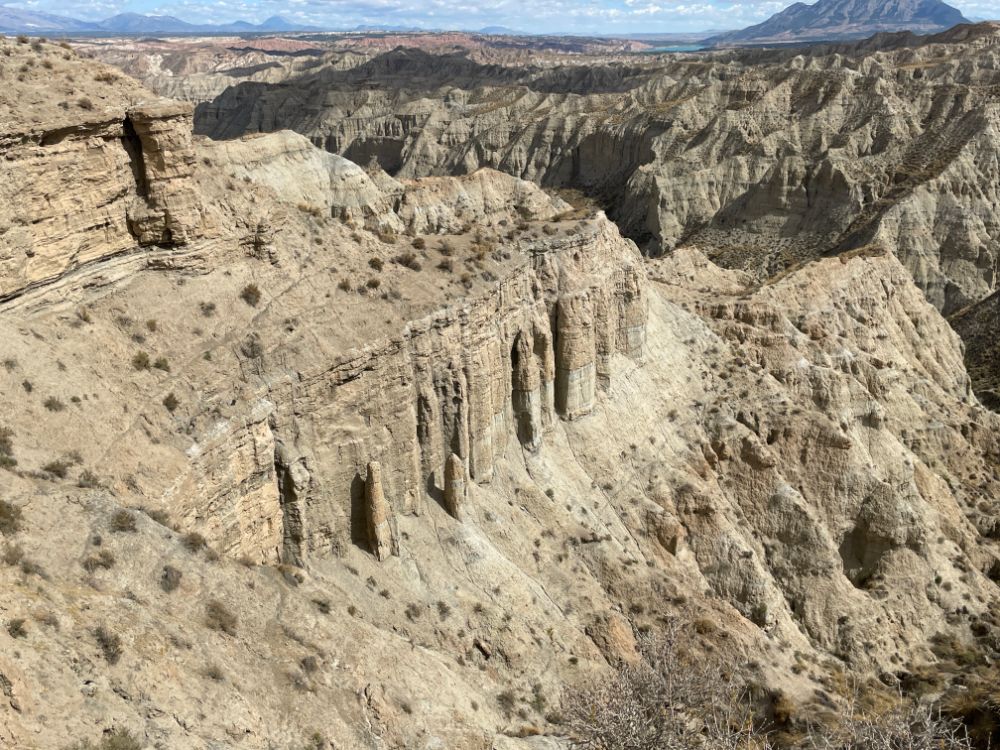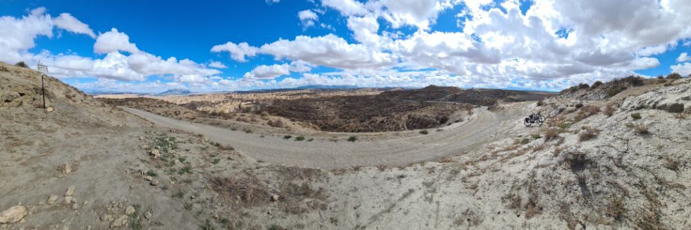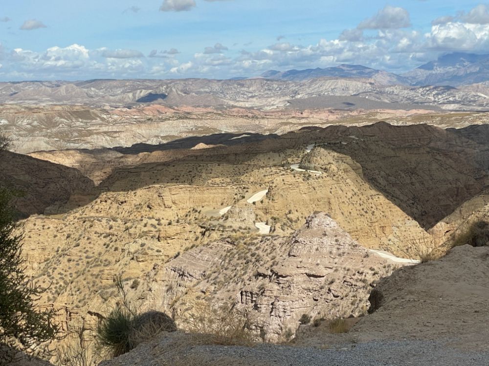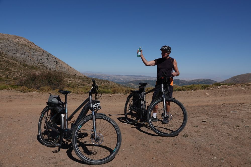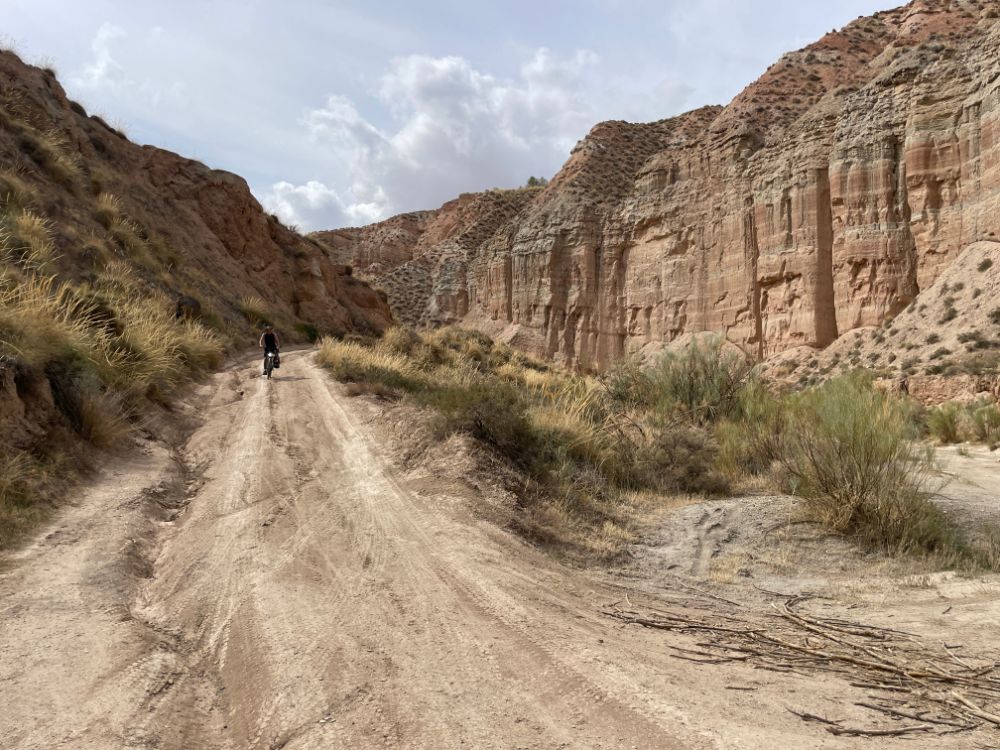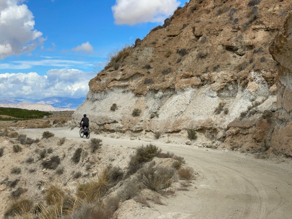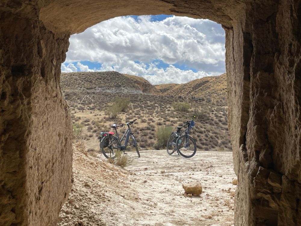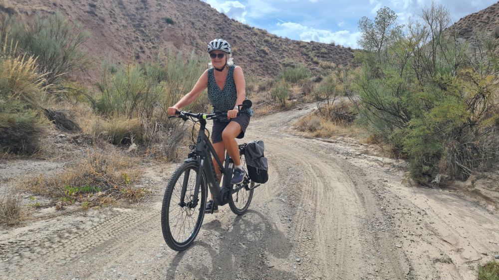 Nach einem gemütlichen Aufstehen und einem noch gemütlicheren Frühstück starten wir gegen 11.30 Uhr mit unseren E-Bikes zu einer 30 Kilometer Offroad-Rundfahrt durch die Gorafewüste. Die Wüste wird auch Grand Canyon von Andalusien genannt. Die Strecke mal eine seehr steile gut