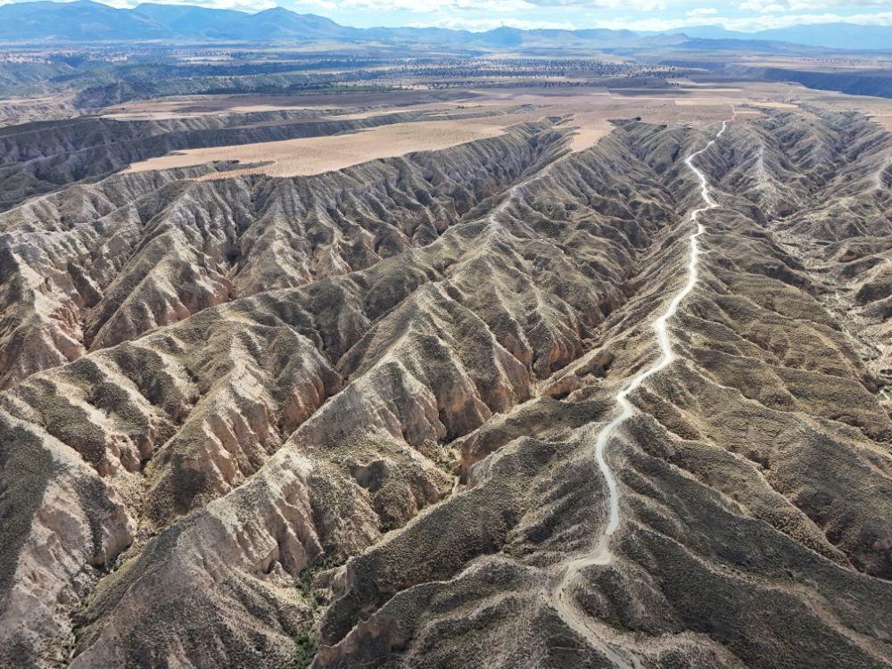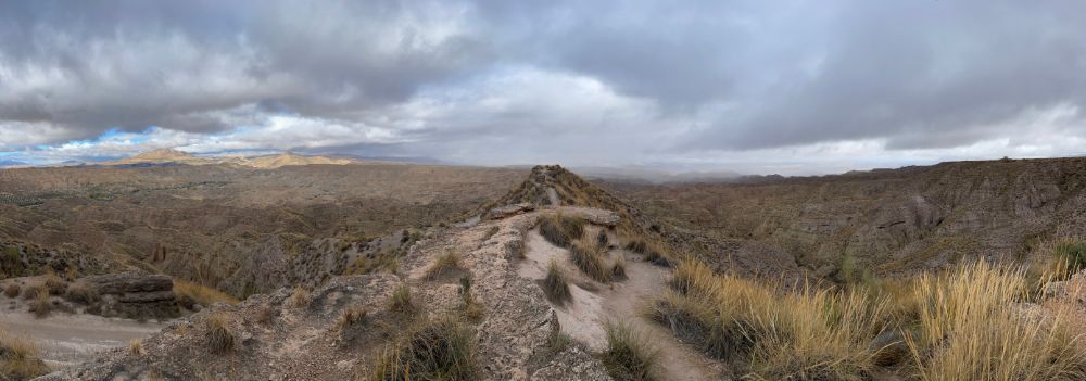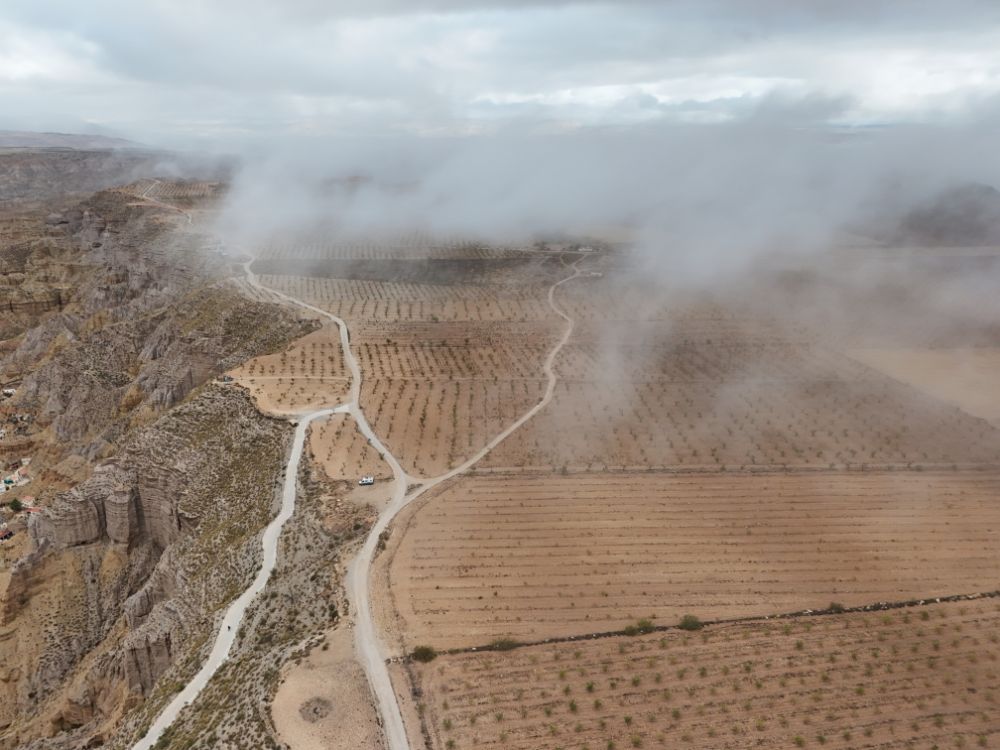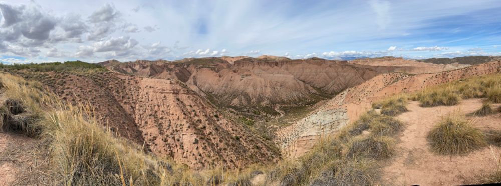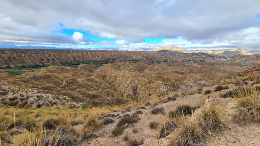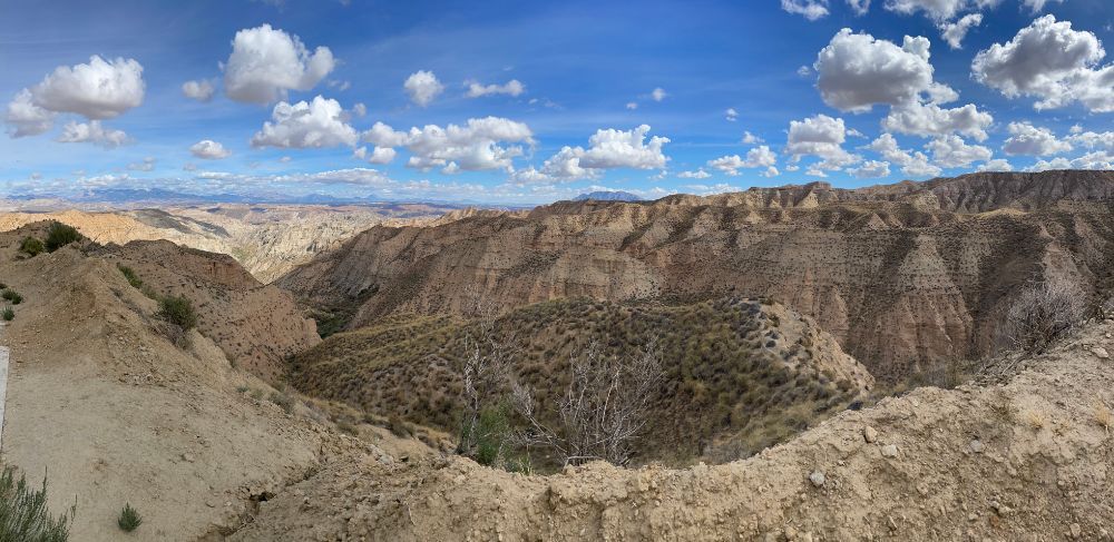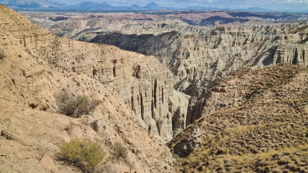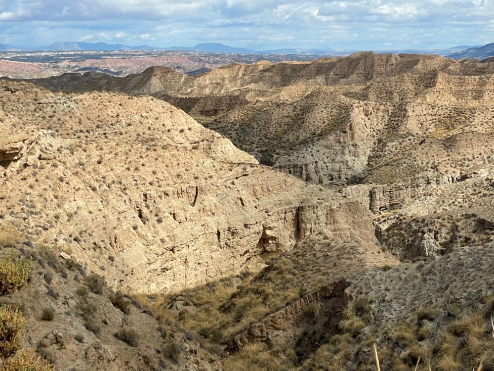 Nach einem gemütlichen Aufstehen und einem noch gemütlicheren Frühstück starten wir gegen 11.30 Uhr mit unseren E-Bikes zu einer 30 Kilometer Offroad-Rundfahrt durch die Gorafewüste. Die Wüste wird auch Grand Canyon von Andalusien genannt. Die Strecke mal eine seehr steile gut